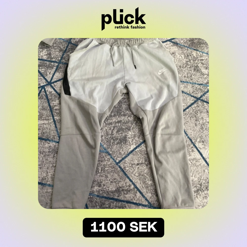 Säljer ett par grå mjukisbyxor från Nike i mycket bra skick. De har en elastisk midja med snörning och en avslappnad passform. Perfekta för träning eller en chill dag hemma. Byxorna har en snygg design med svarta detaljer på sidorna.