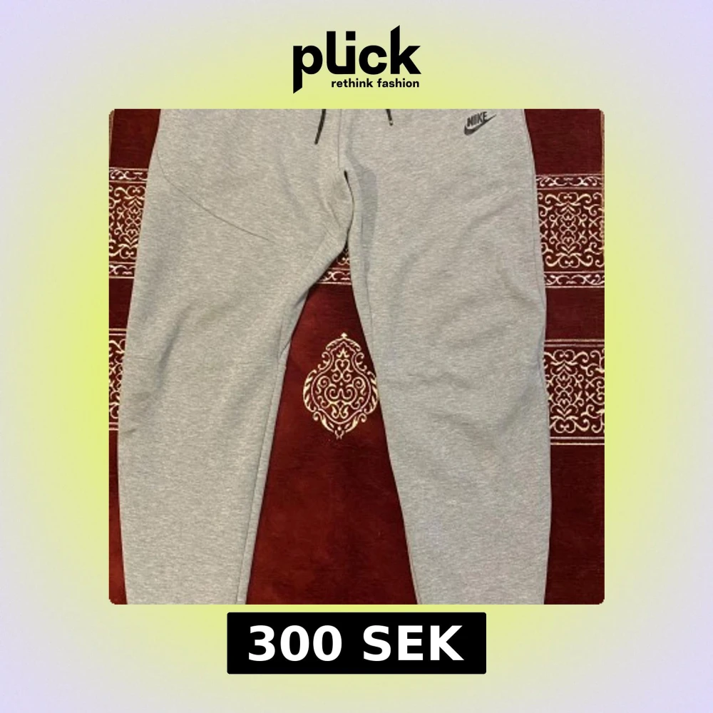 Snygga grå mjukisbyxor från Nike i storlek M. Byxorna har dragsko i midjan, smal passform och diskret Nike-logga på låret. Perfekta för chill eller träning, tillverkade i mjukt bomullsmaterial för extra komfort.