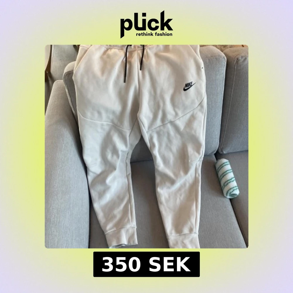 Säljer ett par vita mjukisbyxor från Nike med svart dragsko i midjan och Nike-logga på benet. Byxorna har en avslappnad passform och är perfekta för en chill dag hemma eller en snabb tur till affären.