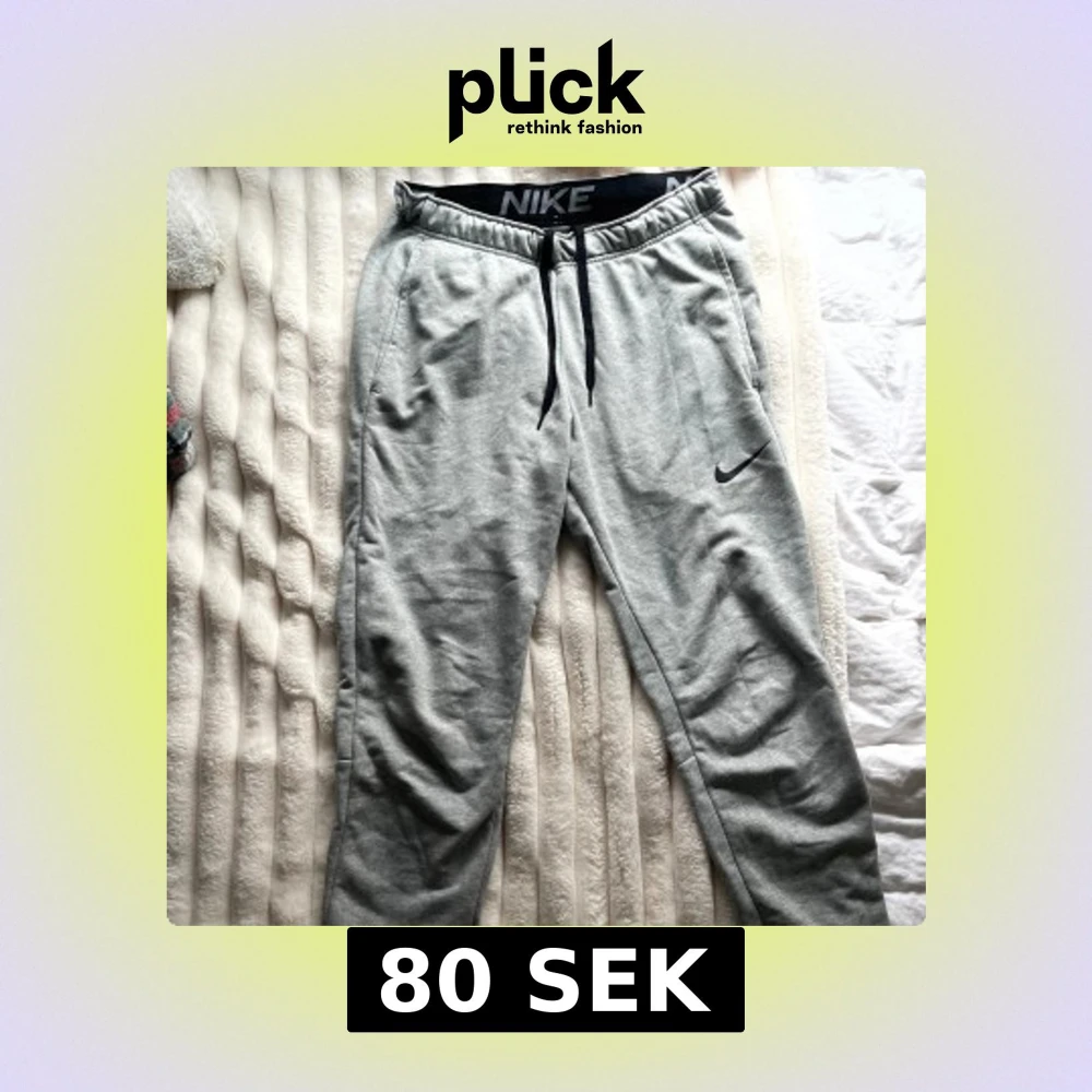 Grå mjukisbyxor från Nike med svart snörning i midjan och Dri-FIT-teknologi. Byxorna har elastisk midja. Perfekta för chill eller träning och riktigt sköna. Bara använda några gånger.
