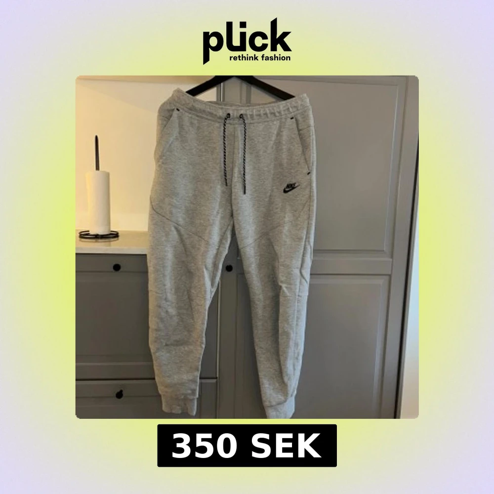 Snygga grå mjukisbyxor från Nike med svarta detaljer och dragsko i midjan. Byxorna har ribbade muddar vid bensluten, praktiska fickor och en liten Nike-logga på ena benet. Perfekta för chill eller träning.
