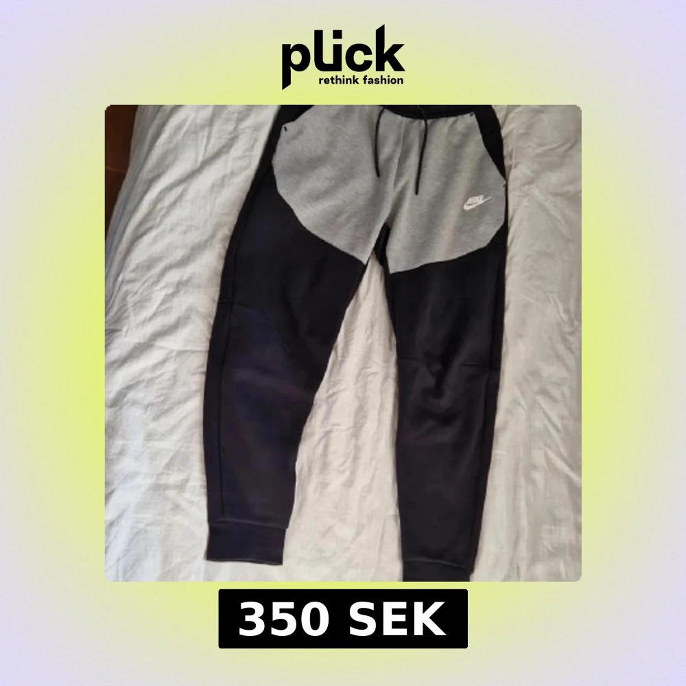 Snygga mjukisbyxor från Nike med svart och ljusgrå färgblock, klassisk logga på benet och snörning i midjan. Perfekta för chill eller träning, med skön passform och mjukt material. Elastiska muddar vid benslut och praktiska fickor på sidorna.