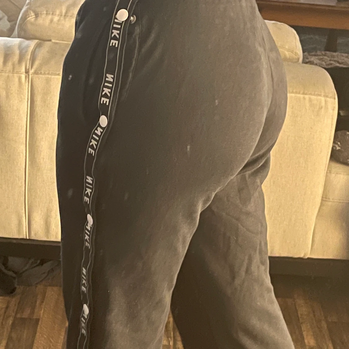 Mjukisbyxor från Nike med knappar på sidorna, älskar dessa byxor men behöver pengarna. Lite lägre midja på dessa, jag är 165 och dom går ner till marken på mig med skor. Kontakta för fler frågor ❤️