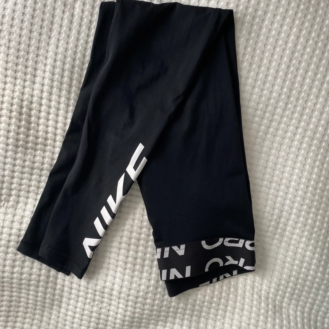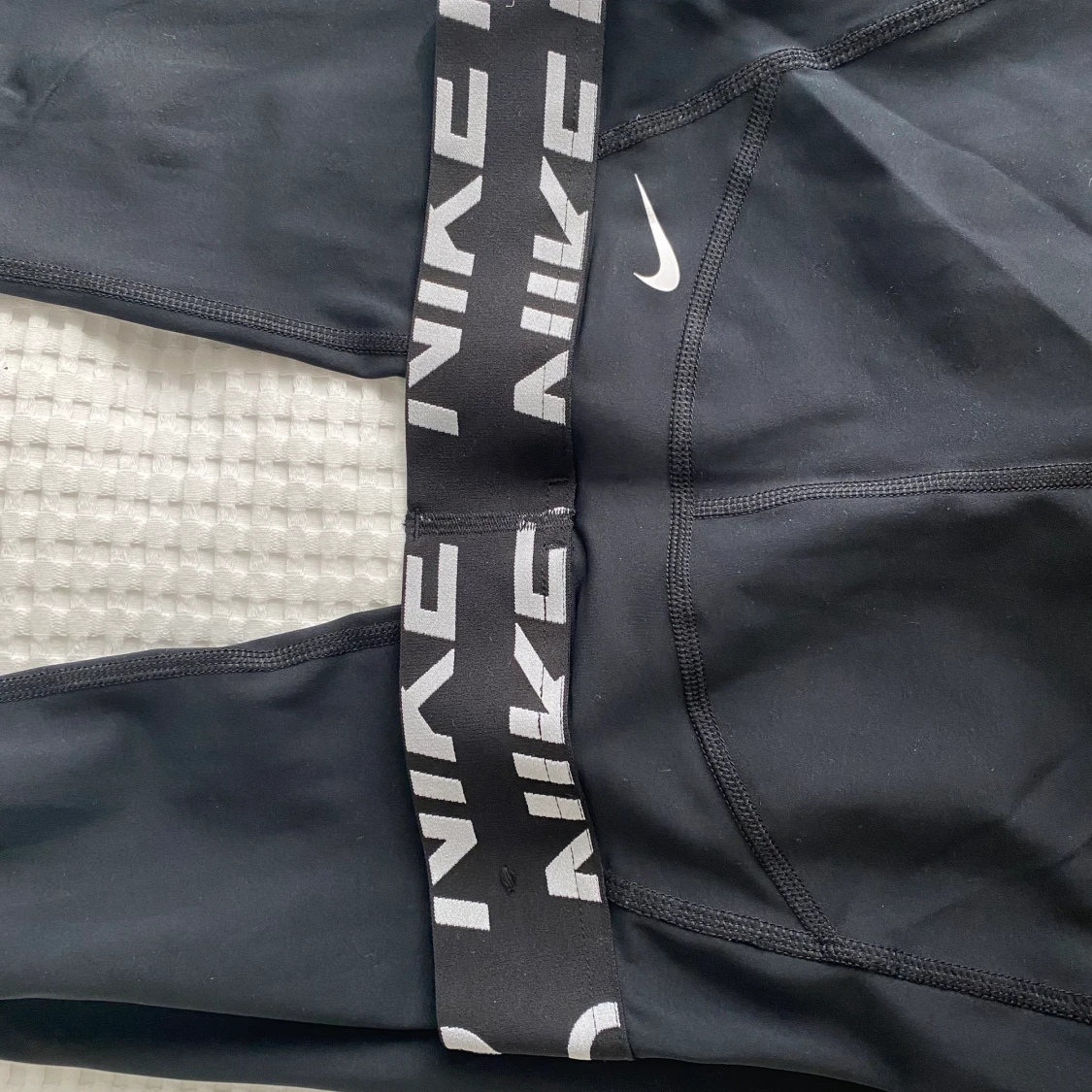 Svarta träningsbyxor från Nike med detaljer längs smalbenen och runt midjan. Använda ett par gånger och är i gott skick! Jag har klippt av lappen som sitter i byxorna då den gav skavsår.