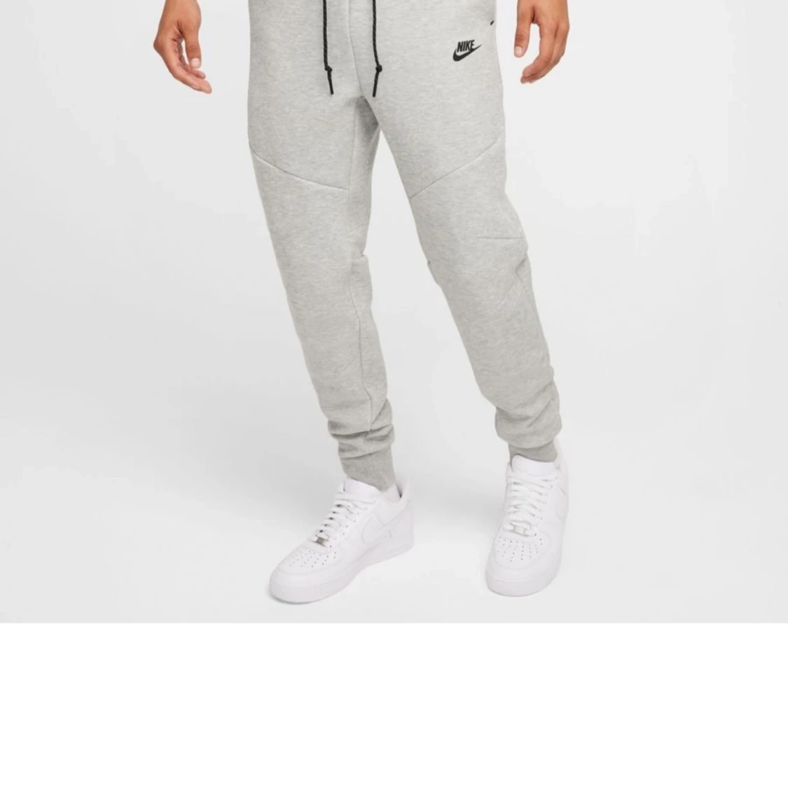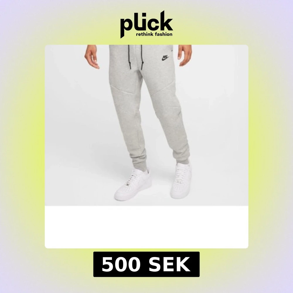 Snygga grå mjukisbyxor från Nike med svart logga på låret. Byxorna har en bekväm passform med snörning i midjan och muddar vid bensluten. Perfekta för en avslappnad stil.