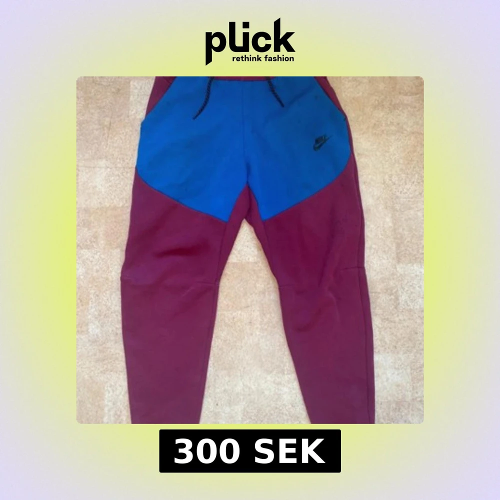 Nike mjukisbyxor i vinrött med blå paneler framtill och svart Nike-logga. Byxorna har snörning i midjan, dragkedjeficka bak och är tillverkade i mjukt bomullsmaterial. Perfekt för chill eller träning, med en loose passform och sportig look. Priset kan diskuteras
