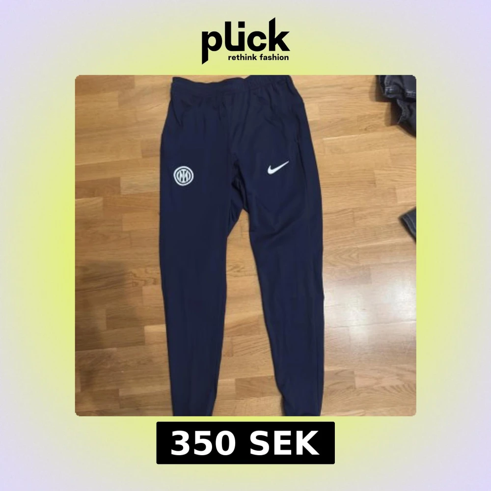 Snygga mörkblå träningsbyxor från Nike med Inter-logga och vit swoosh på framsidan. Slim fit-modell med elastisk midja och tillverkade i Dri-Fit polyester som andas. Perfekta för fotboll eller gymmet, riktigt sköna och stilrena.