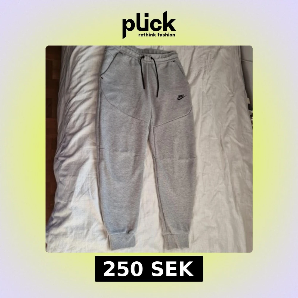 Snygga grå mjukisbyxor från Nike med svart logga på låret. Byxorna har resår och snörning i midjan, muddar vid bensluten och praktiska fickor. Perfekta för chill eller träning, tillverkade i mjukt bomullsmaterial.