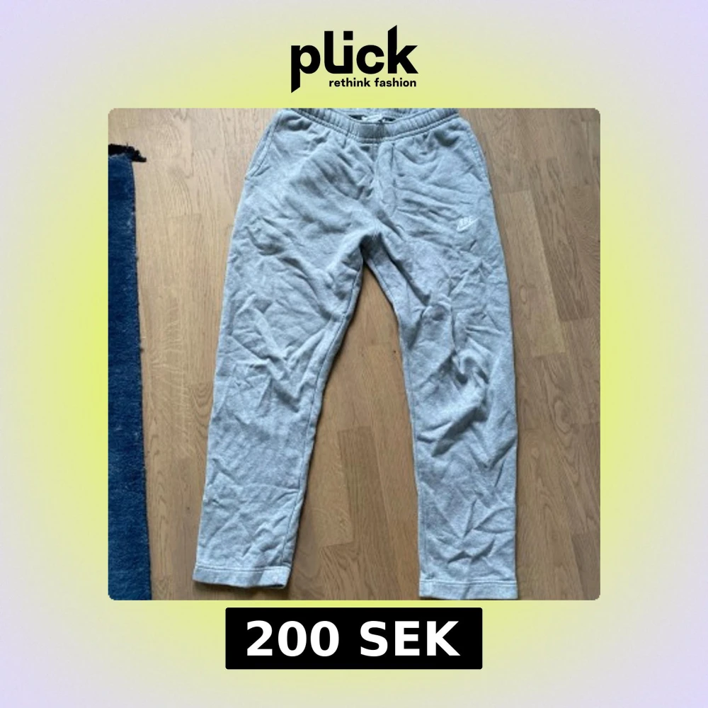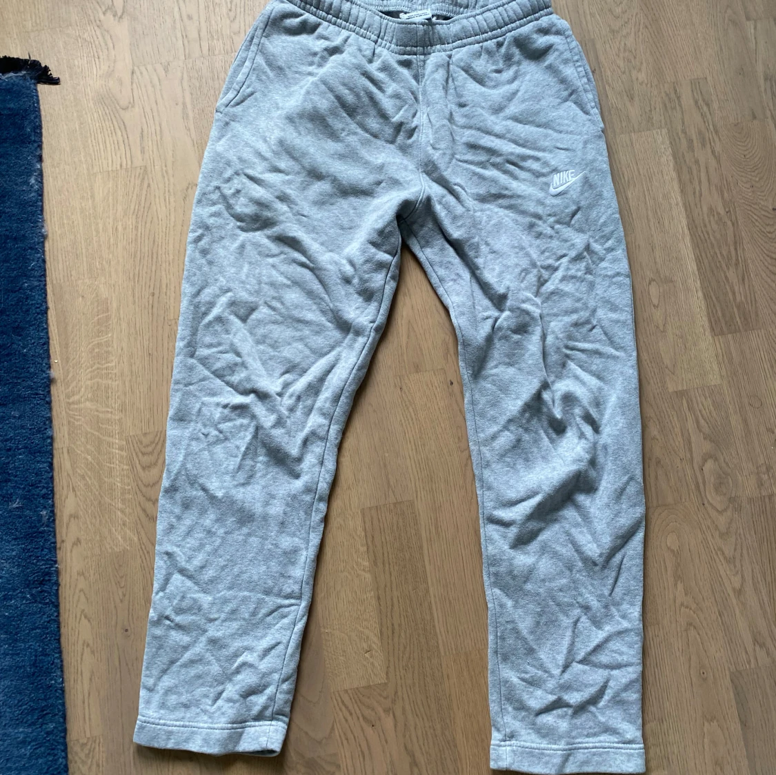 Gråa mjukisbyxor från Nike med elastisk midja och sidofickor. Byxorna har en avslappnad passform och är tillverkade i mjukt bomullsmaterial. Perfekta för chill dagar eller träning. Nike-logga broderad på vänster lår.
