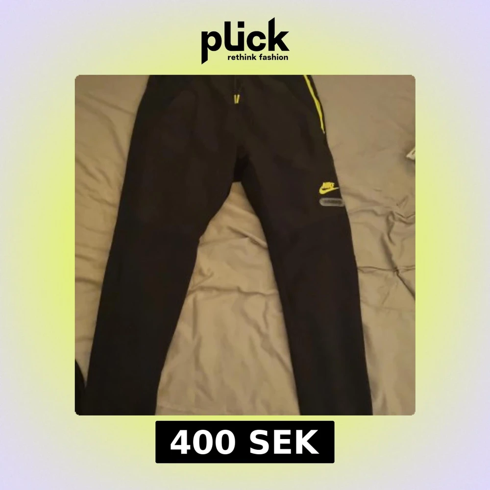 Snygga svarta träningsbyxor från Nike med gul logga och detaljer. Byxorna har en tight passform och är perfekta för träning. De har en elastisk midja för extra komfort.