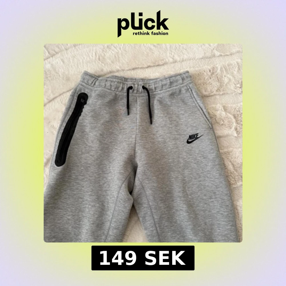 Grå mjukisbyxor från Nike med svart logga på benet, svarta dragsnören i midjan och en praktisk dragkedjeficka på sidan. Tillverkade i mjukt bomullsmaterial för maximal komfort. Perfekta för chill eller träning.