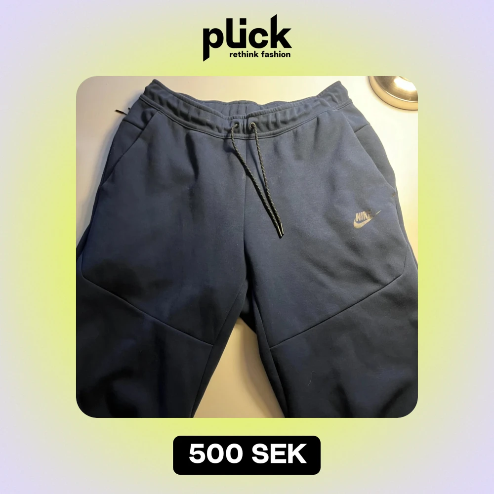 Säljer ett par blåa nike tech byxor som är i bra skick och i storlek M
