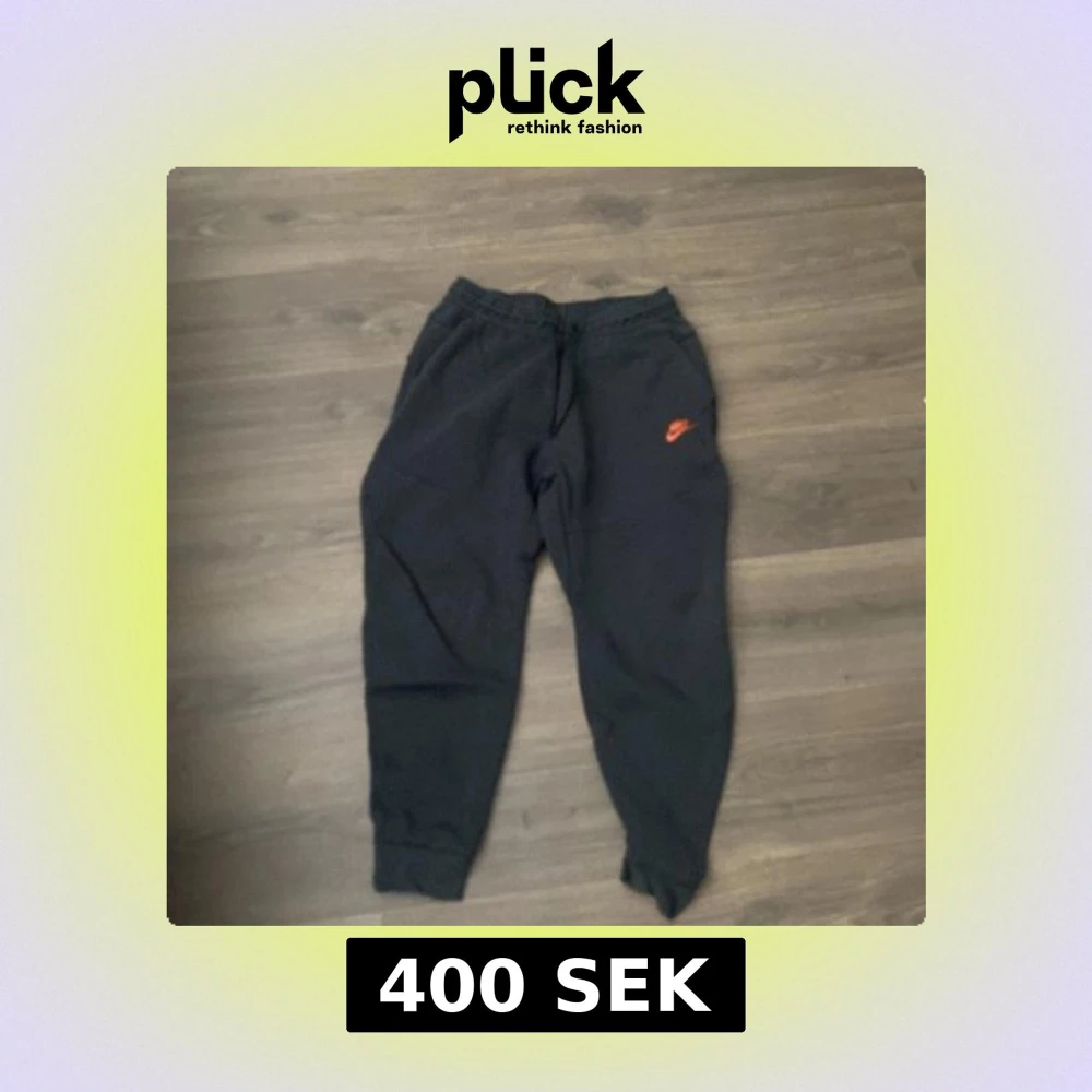 Nypris 1100kr. De är knappt använda. Svarta mjukisbyxor från Nike med orange logga på vänster lår. Byxorna har resår i midjan och vid bensluten samt dragkedjeförsedda fickor på sidorna. Perfekta för chill eller träning.