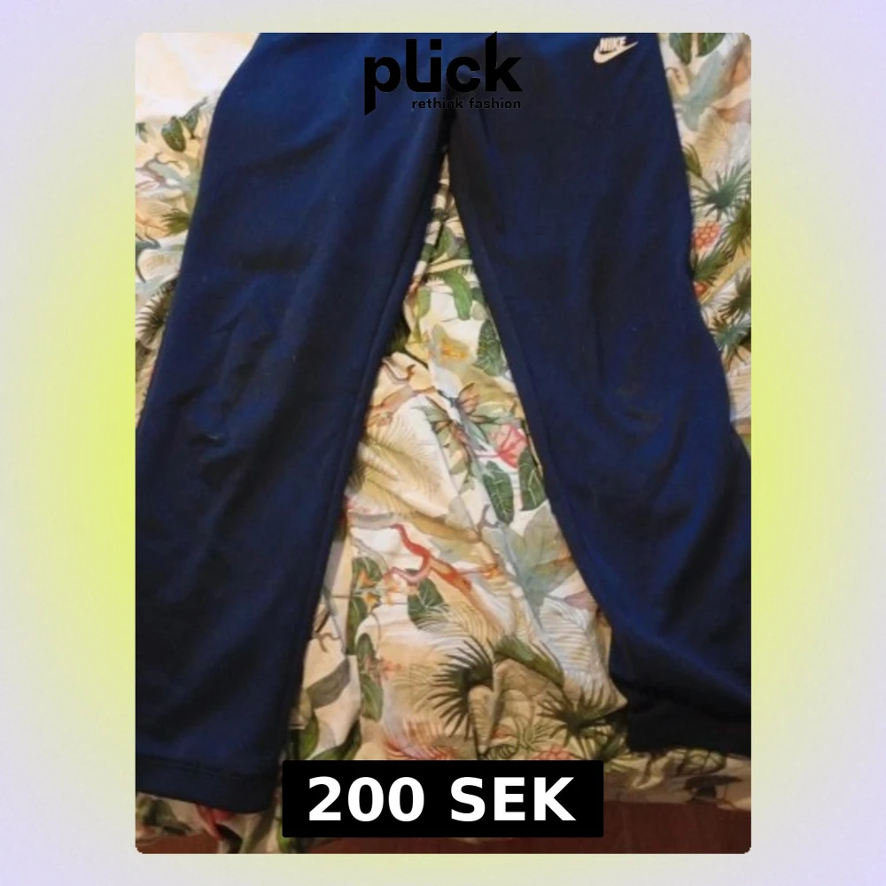 Säljer ett par mörkblå mjukisbyxor från Nike i storlek barn XL, passar dig som är 158-170 cm. Byxorna har en enkel design med Nike-logga på höften och är gjorda i mjukt material som är skönt att ha på sig. Perfekta för chill eller träning.