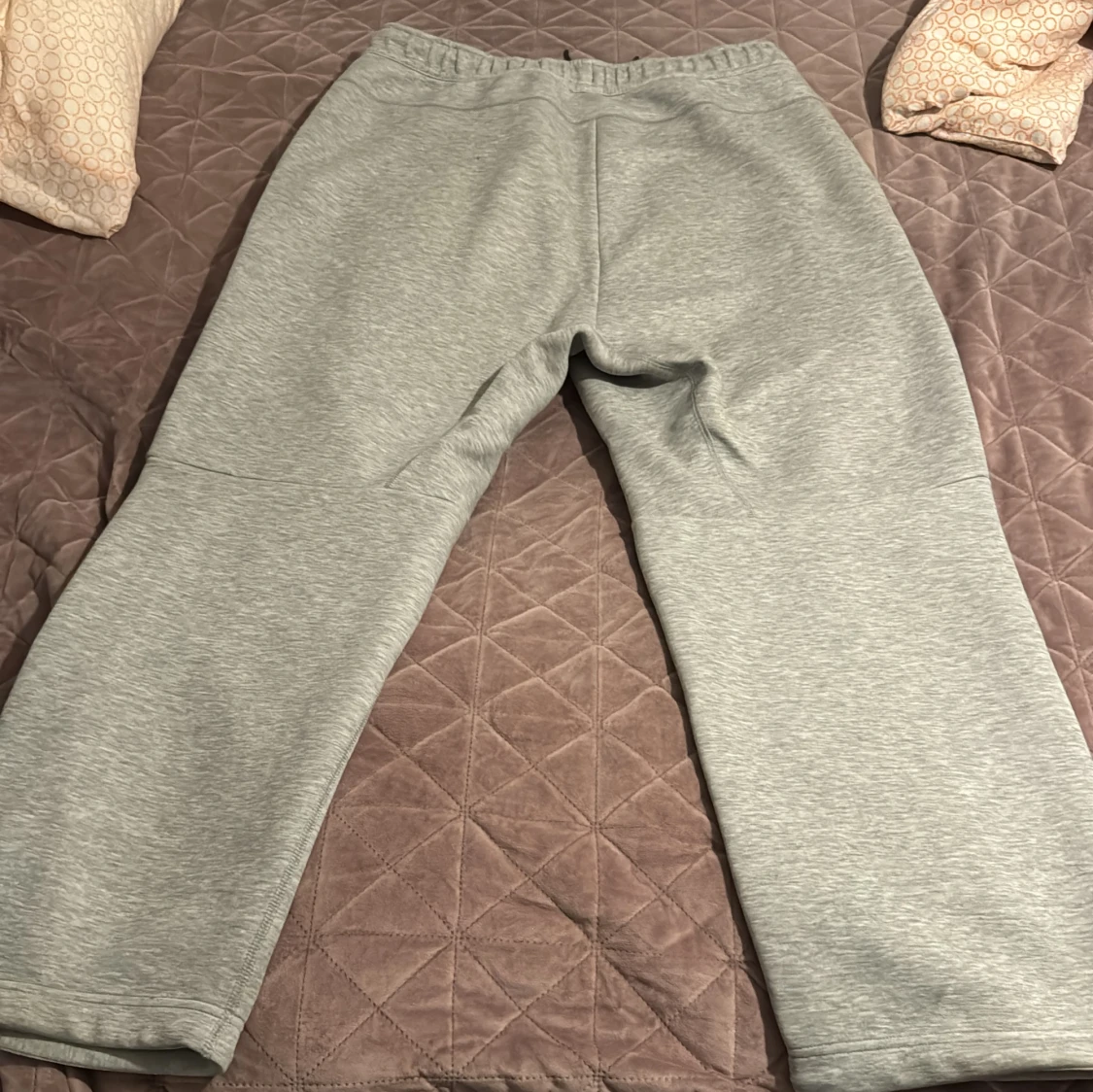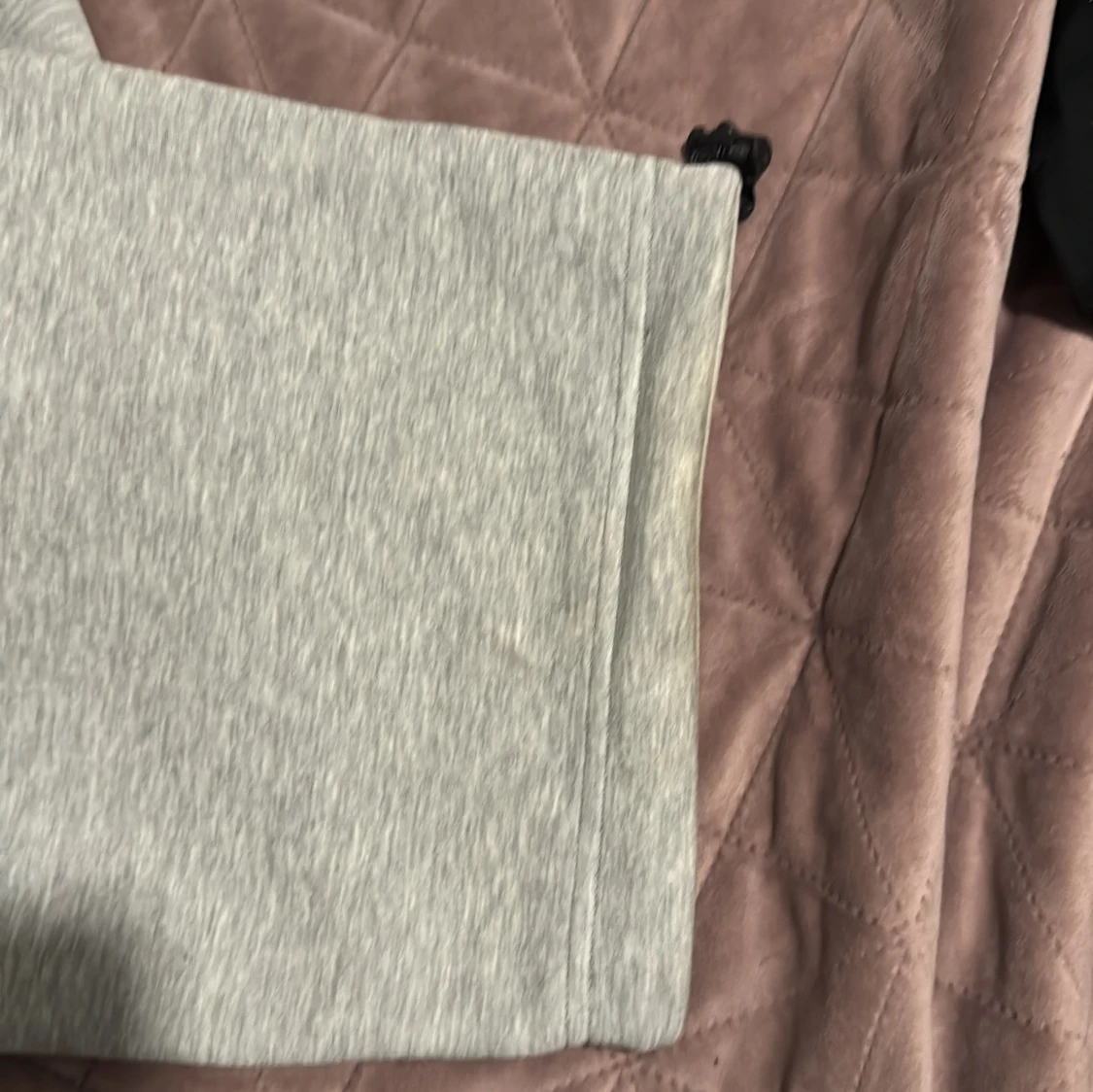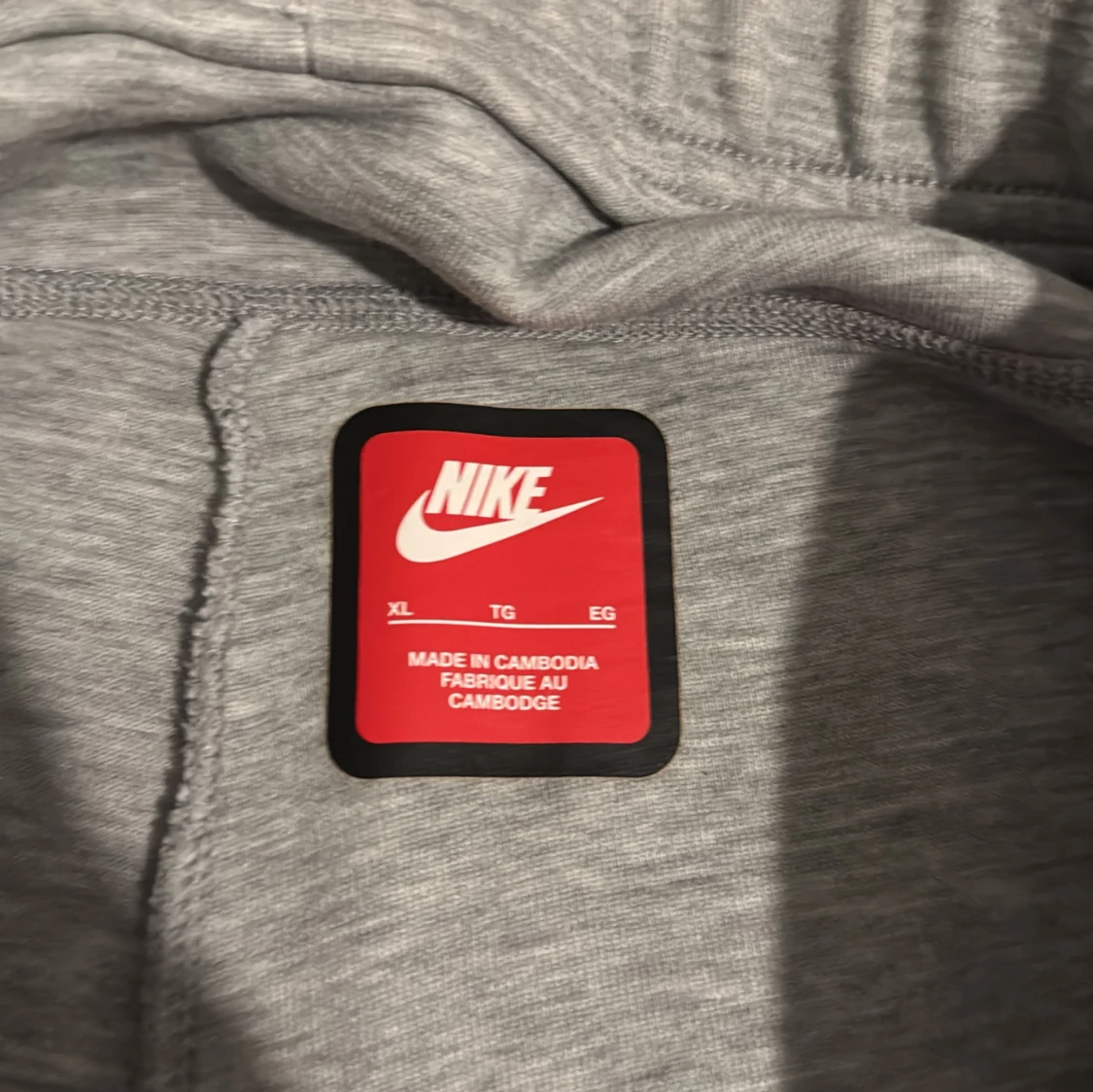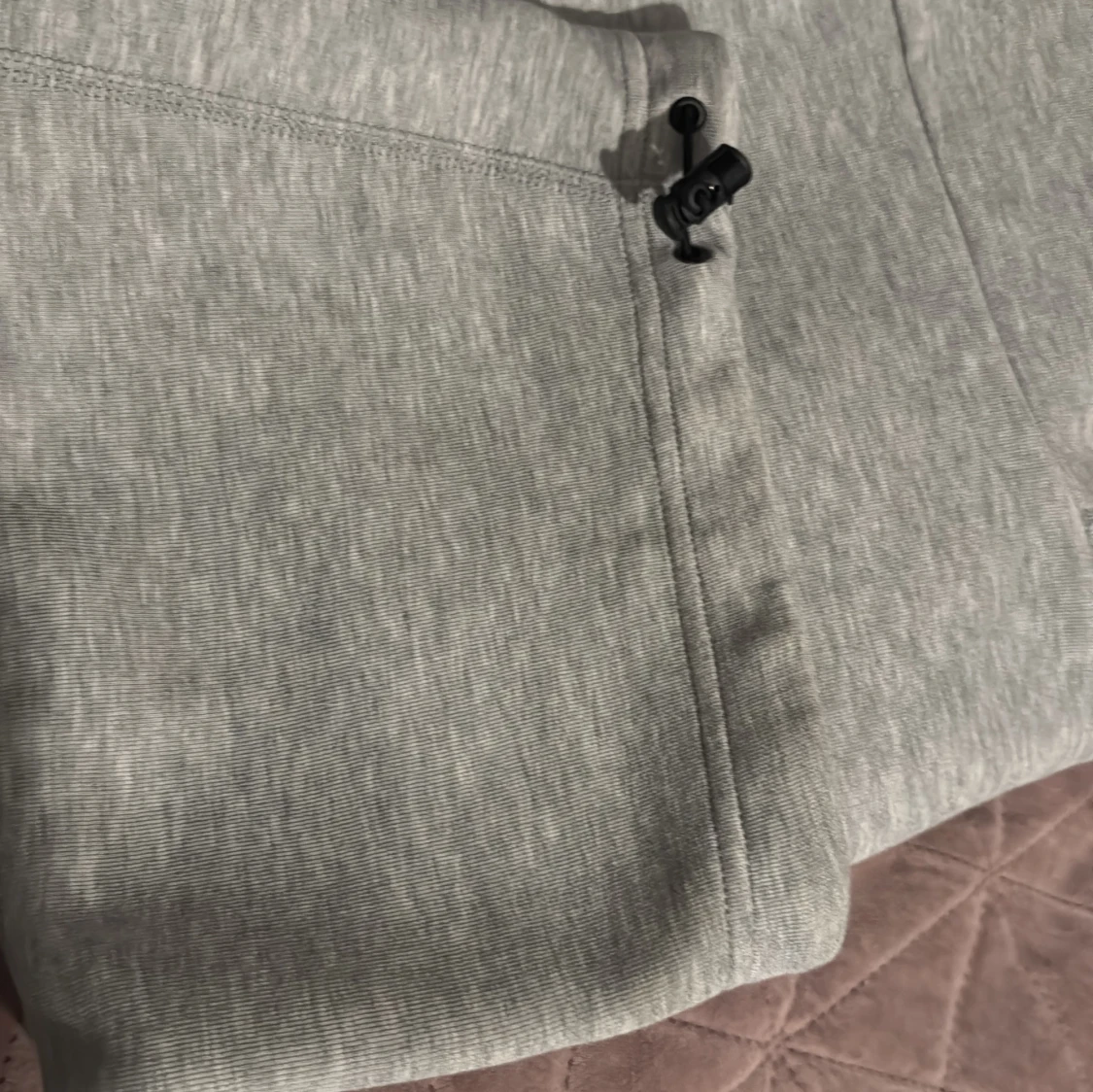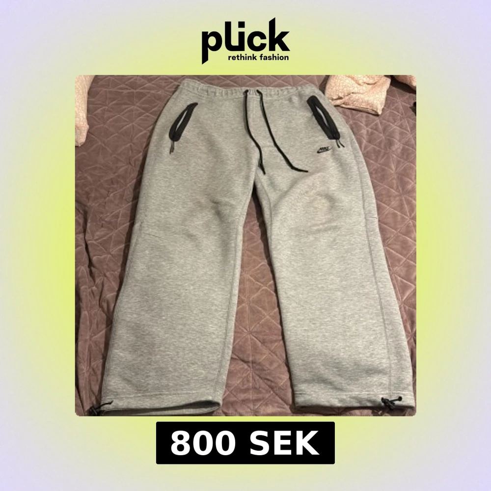 Snygga grå mjukisbyxor från Nike i storlek XL. Byxorna har svarta snören i midjan, svarta dragkedjor på fickorna och justerbara benslut. Perfekta för chill eller träning, med loose passform och mjukt material.