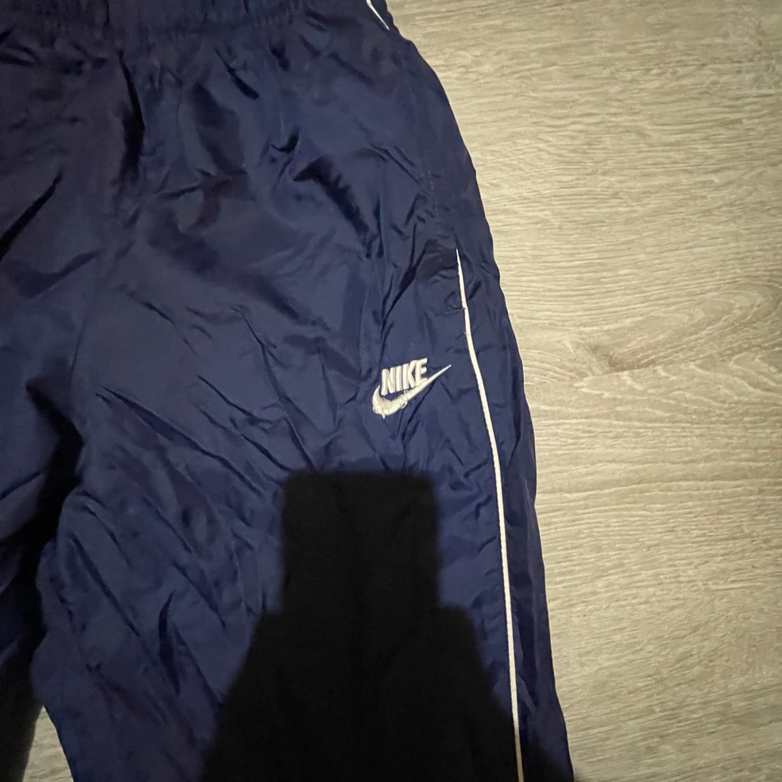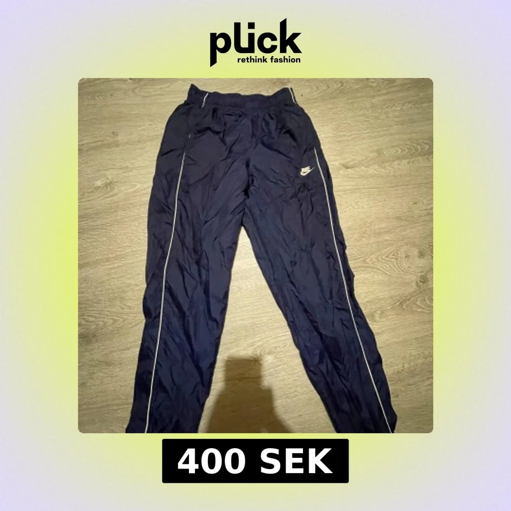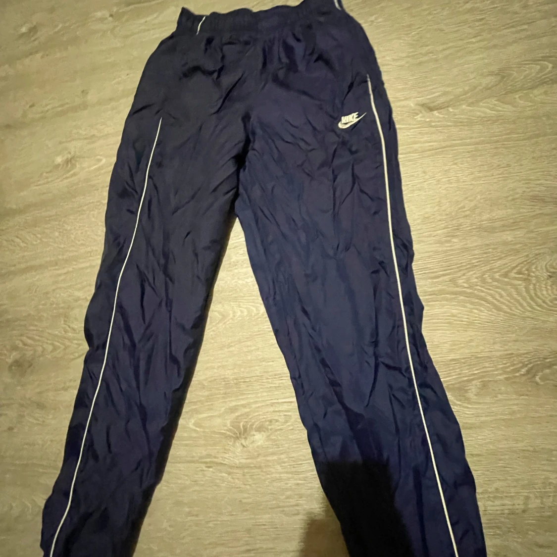 Snygga marinblå träningsbyxor från Nike med vita detaljer längs benen och broderad logga på låret. Byxorna har resår i midjan och är tillverkade i ett lätt och syntetiskt material som andas. Perfekta för dig som gillar sportig stil.