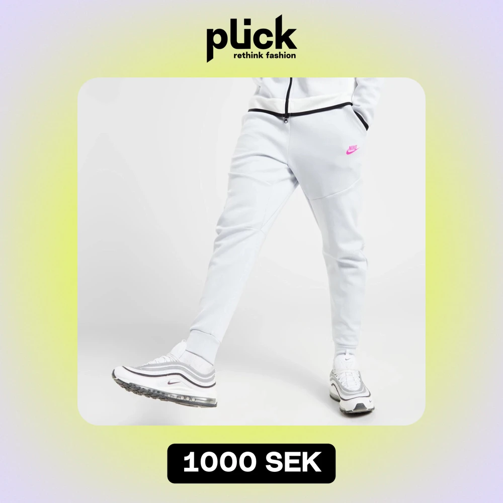 Säljer vita nike tech byxor i mycket bra skick. Använda typ 1 gång. De har en rosa Nike-logga på sidan och dragkedja på fickan. Fleecen ligger också ute till försäljning.
