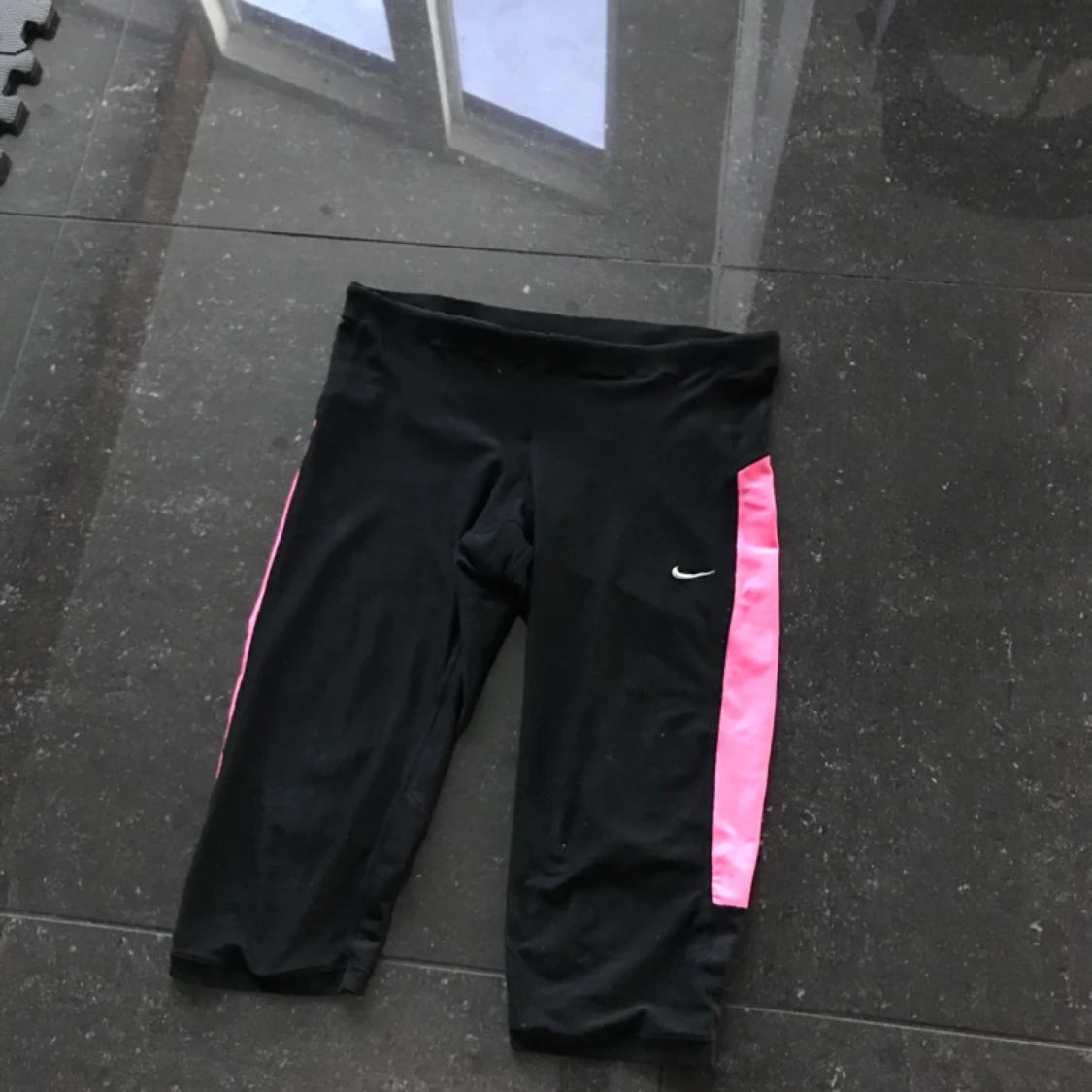Snygga träningstights i svart & rosa från Nike Dri-Fit storlek Small men jag tycker de är lite större så skulle uppskatta dem till Medium. Framhäver rumpan och är supersköna att ha på sig och torkar snabbt! Praktisk ficka i bak!