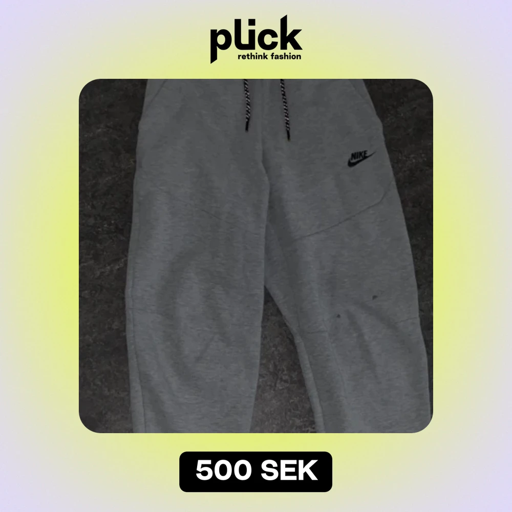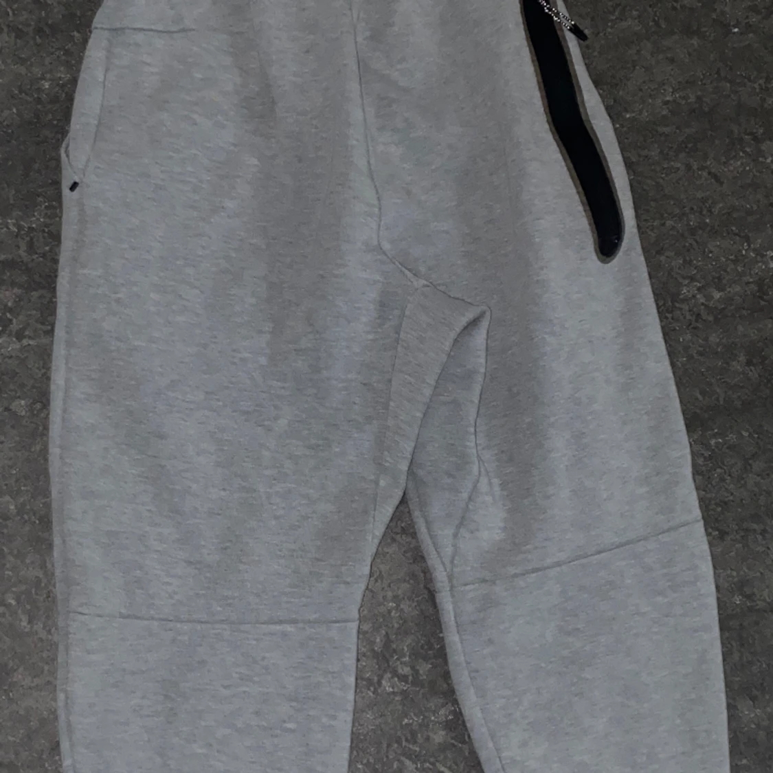 Ett Par Gråa Nike Tech Byxor Ifrån Jd Sports , Använt Dem Flera Gånger . Finns Två Små Små Fläckar Där Fram