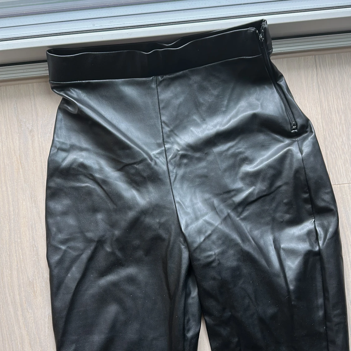 Svarta skinnbyxorns ifrån NLY- trend i strl S passar dem som är runt 170cm långa för är långa på mig som är 160 cm lång. Aldrig använda därför säljs dem för 250kr
