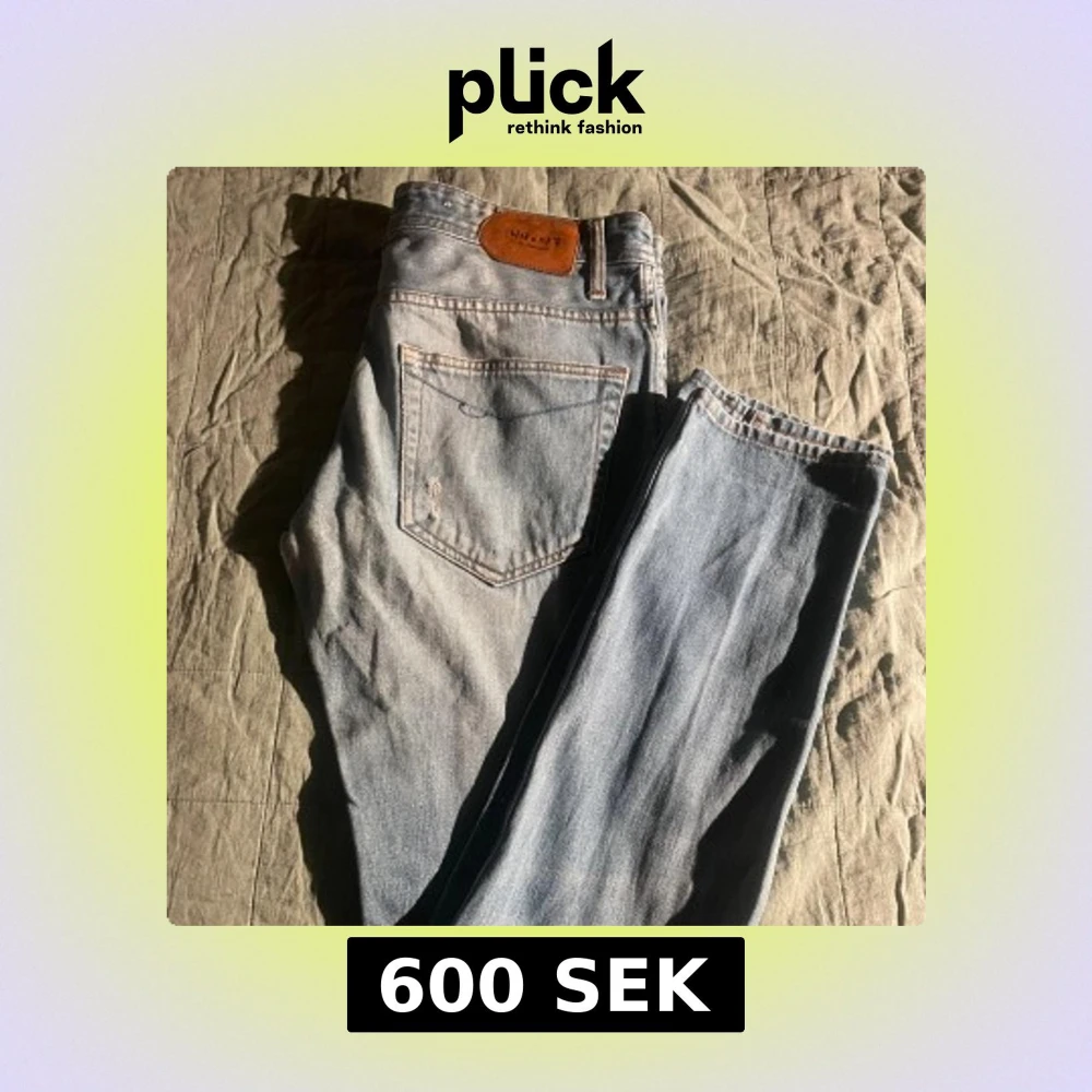 Säljer ett par ljusblå jeans från NN07 med klassisk femficksdesign och slitna detaljer. Jeansen har raka ben och normal passform, tillverkade i bomullsdenim. Snygga kontrastsömmar och läderpatch bak i midjan. Perfekta för en avslappnad stil. Nytt pris: 1700kr. Mitt pris: 600kr. Hör av er vid funderingar!