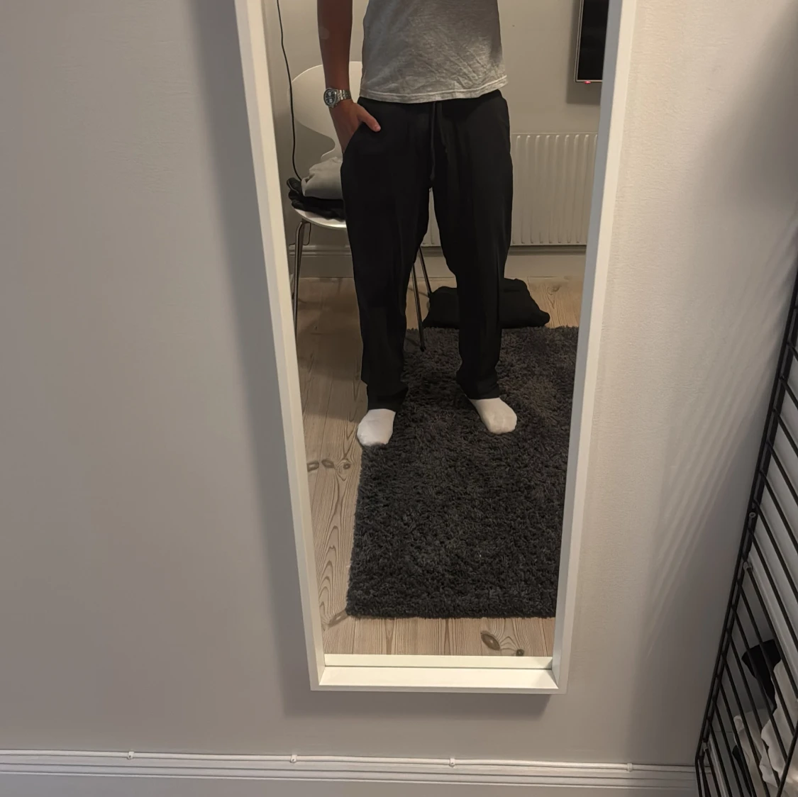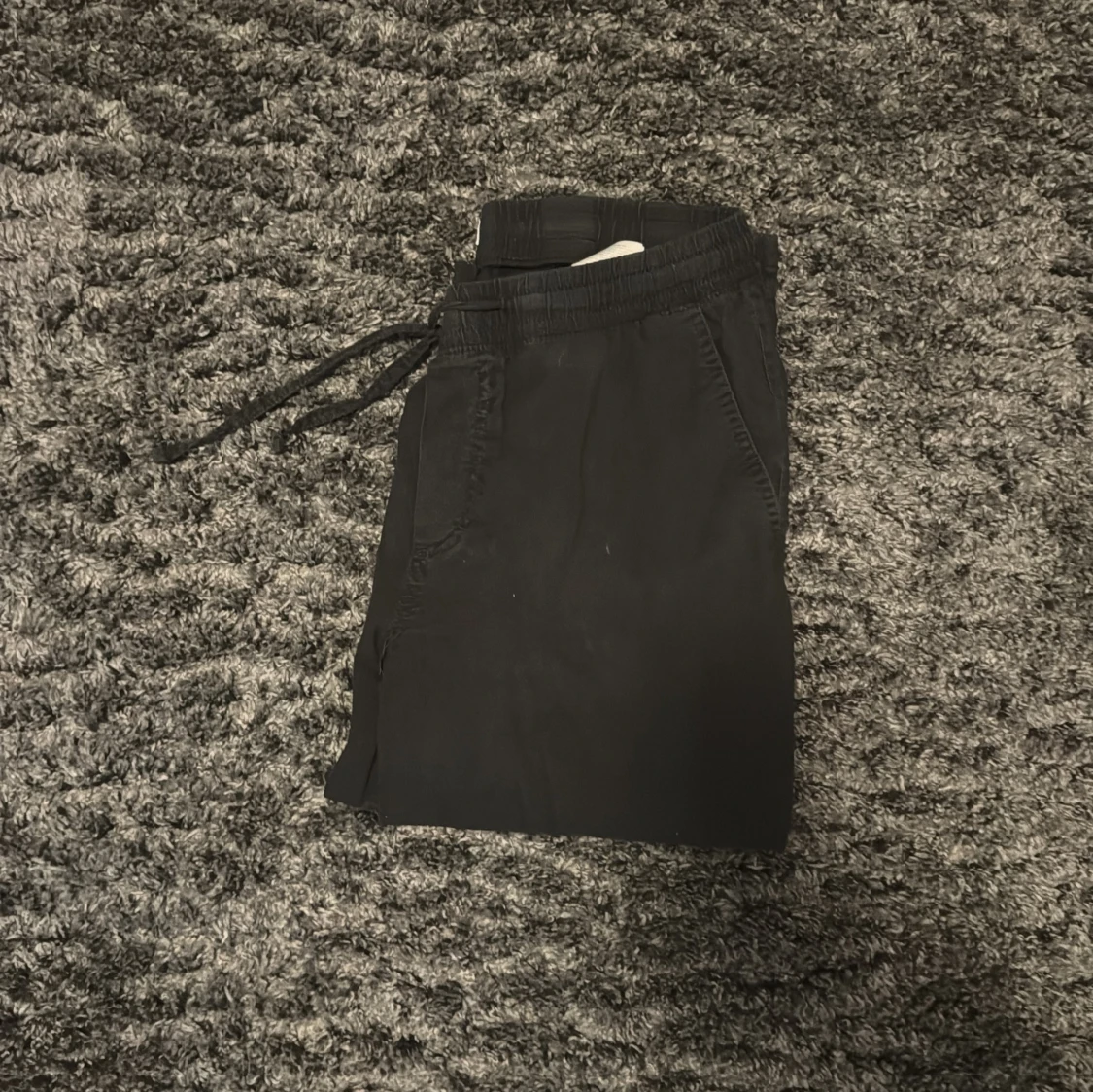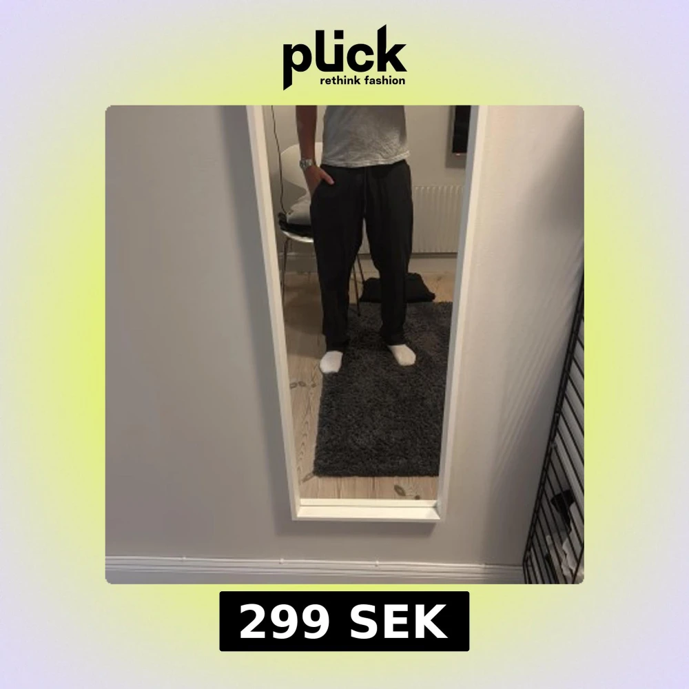 Svarta linnebyxor med elastisk midja och snörning. Byxorna har en loose passform och är tillverkade i mjukt material, perfekta för chill dagar. Fickor på sidorna och enkel stil som funkar till det mesta.