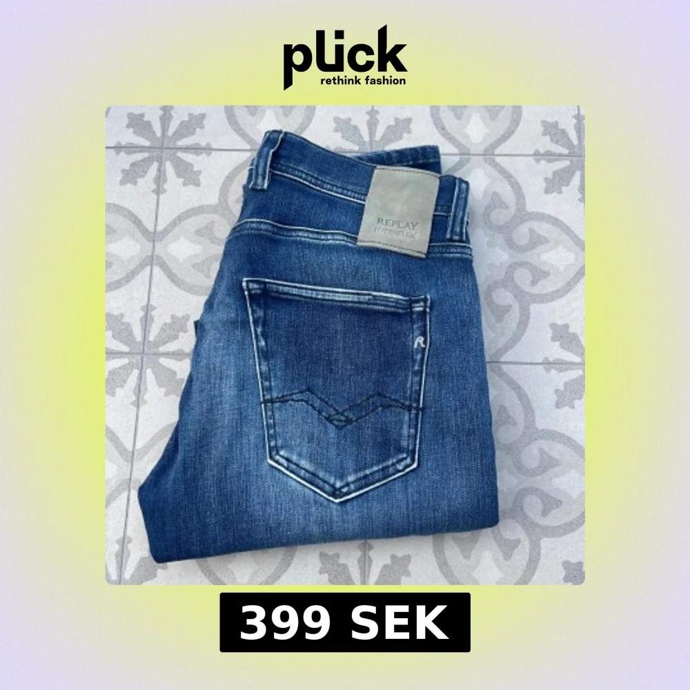 Säljer ett par snygga blå Replay Hyperflex Grover jeans i extremt bra skick! De har en slim fit passform och är tillverkade i ett stretchigt material för extra komfort. Klassisk femficksdesign med märkets logga på bakfickan och en diskret Replay-detalj vid fickan fram. Storlek 30/32. Hör av dig vid det minsta lilla! 🤙🙌