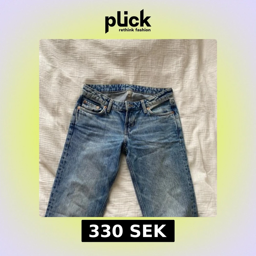 Säljer ett par klassiska blå jeans från Weekday med fem fickor och dragkedja. Jeansen har en bootcut passform och låg midja, perfekta för en avslappnad stil. Tidlös design som funkar till det mesta.