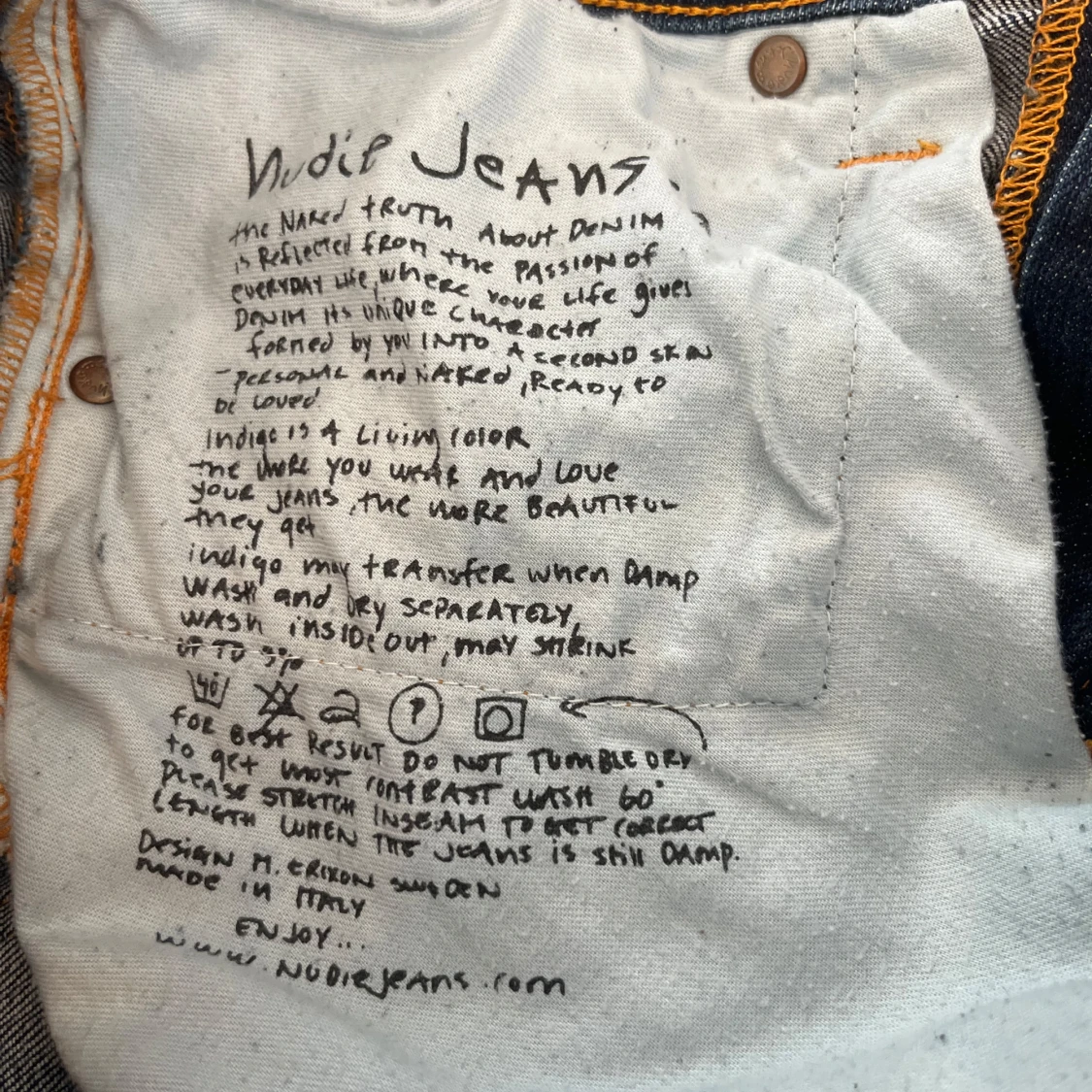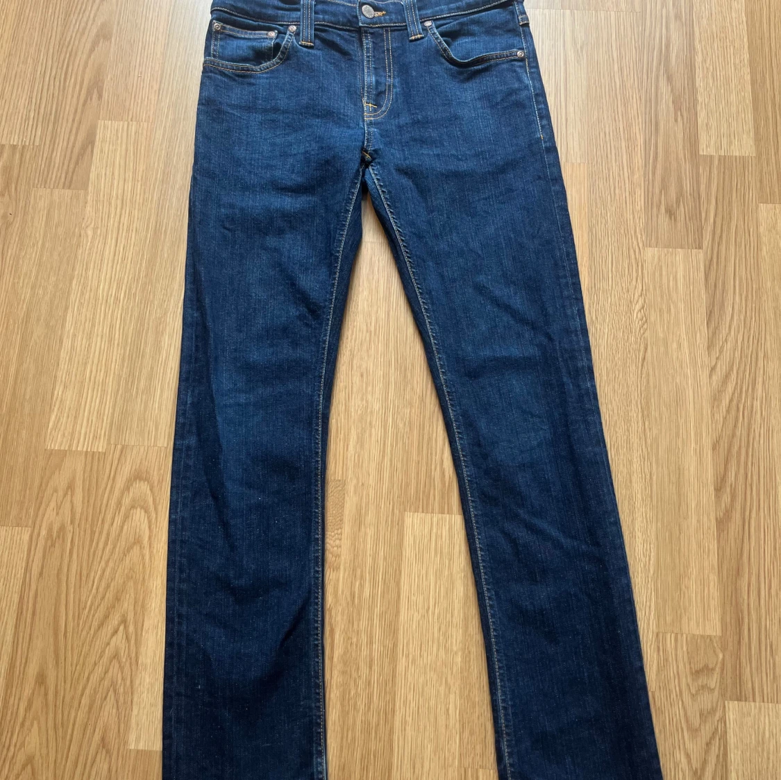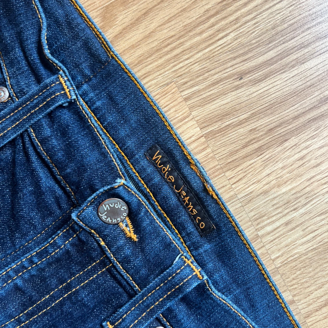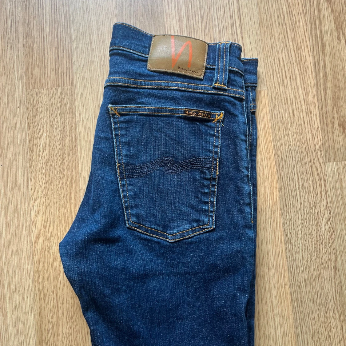 Snygga mörkblå jeans från Nudie Jeans med klassisk femficksdesign och kontrastsömmar. Modellen har rak passform och är tillverkad i slitstarkt bomullsjeans. Perfekta för dig som gillar stilrena och tidlösa jeans med diskreta detaljer.