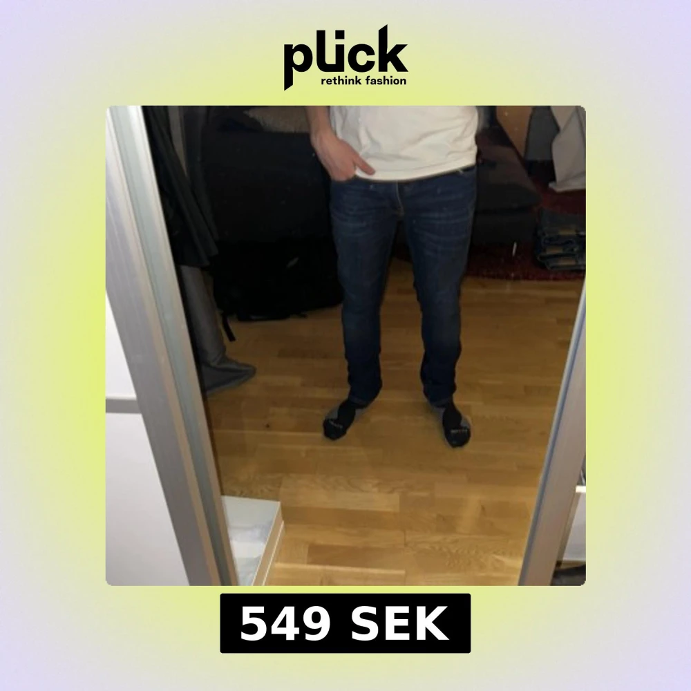 Säljer mina nästan helt nya mörkblå nudie jeans bara använda ett fåtal gånger. Dom var tyvär lite långa för mig!