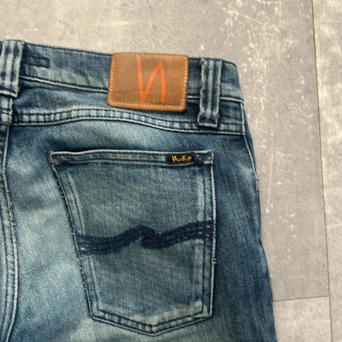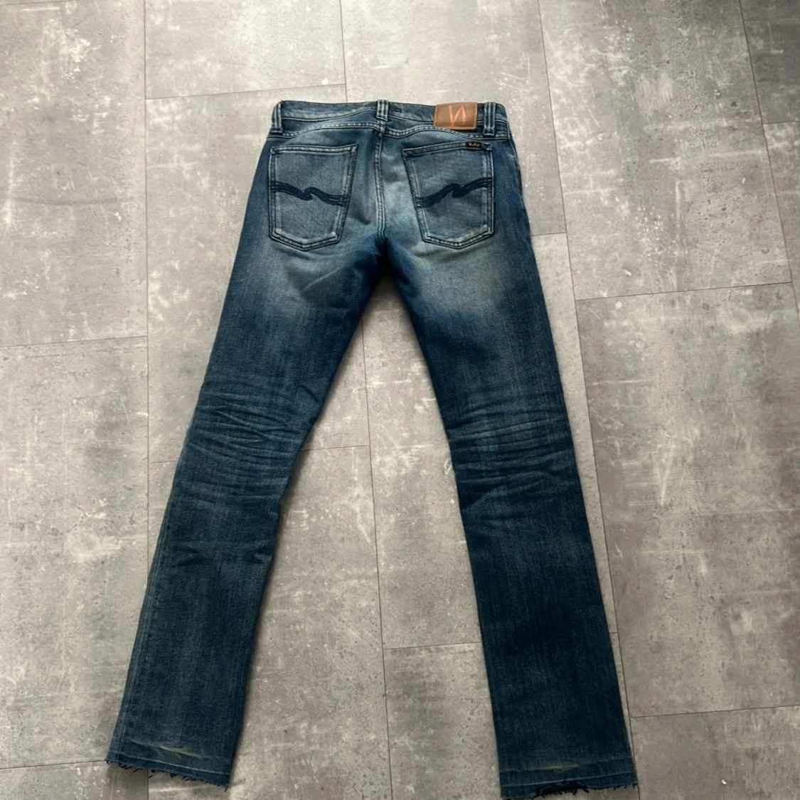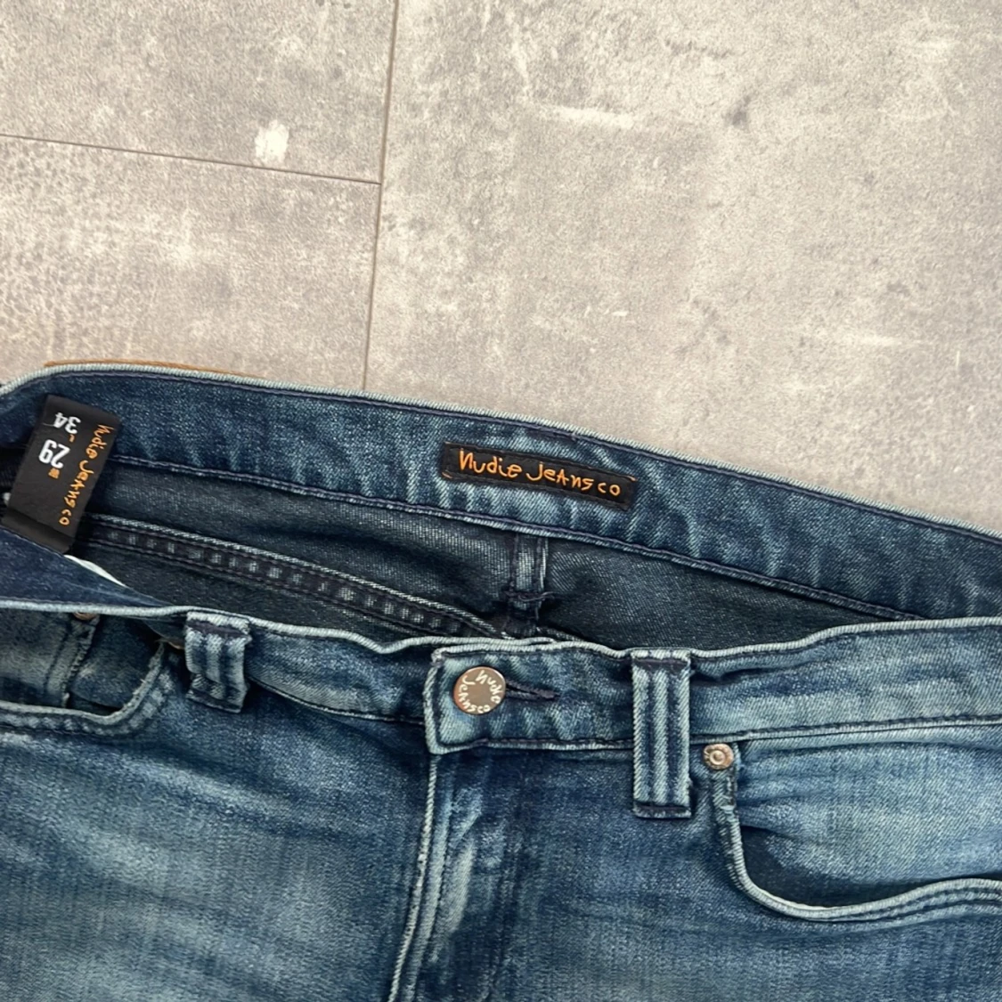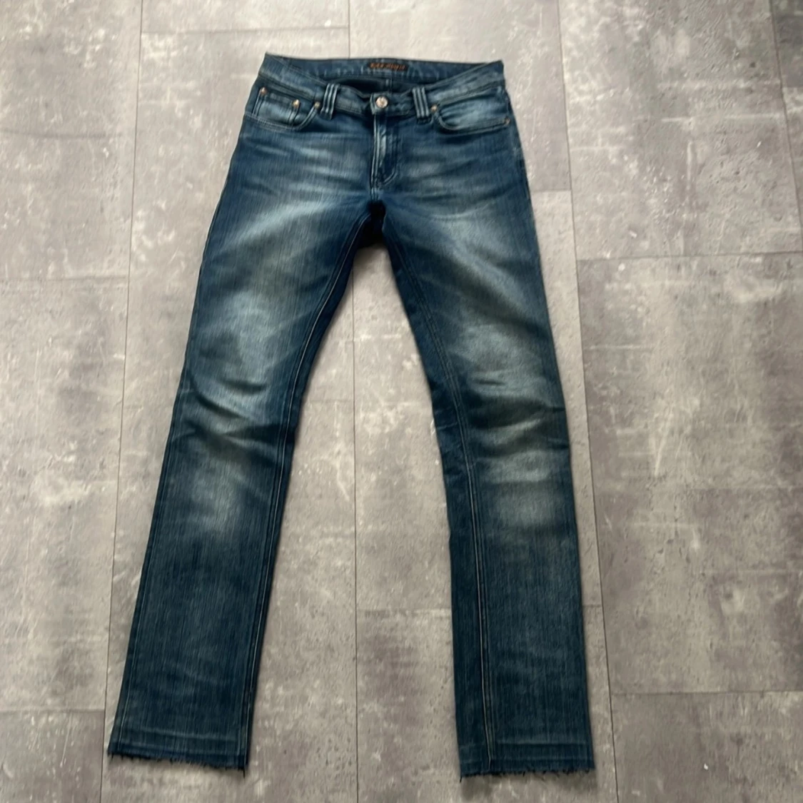 Nudie jeans som står att de e storlek 29/34 men dem sitter som 29/32 då dem är uppsydda av en kille sen sprättade vilket även gör jeansen lite snyggare. Kolla min profil för fler feta kläder, kan ordna bra paketpriser! 😊