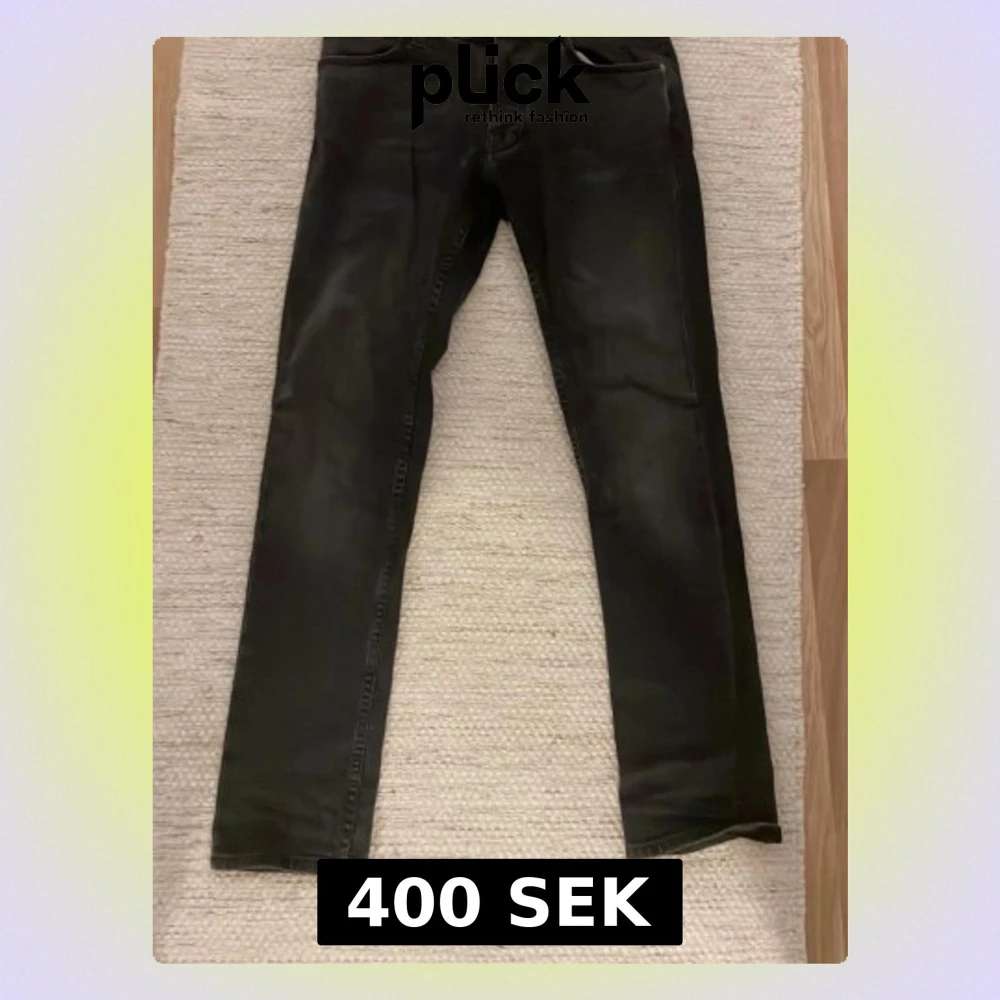 Svarta jeans från Nudie Jeans i storlek 30/32. Nypris 1600kr. Klassisk femficksmodell med raka ben och subtila detaljer på bakfickorna. Slimfit. Jeansen har en stilren look och är tillverkade i slitstarkt bomullsmaterial. Perfekt för dig som gillar minimalistisk och tidlös stil.