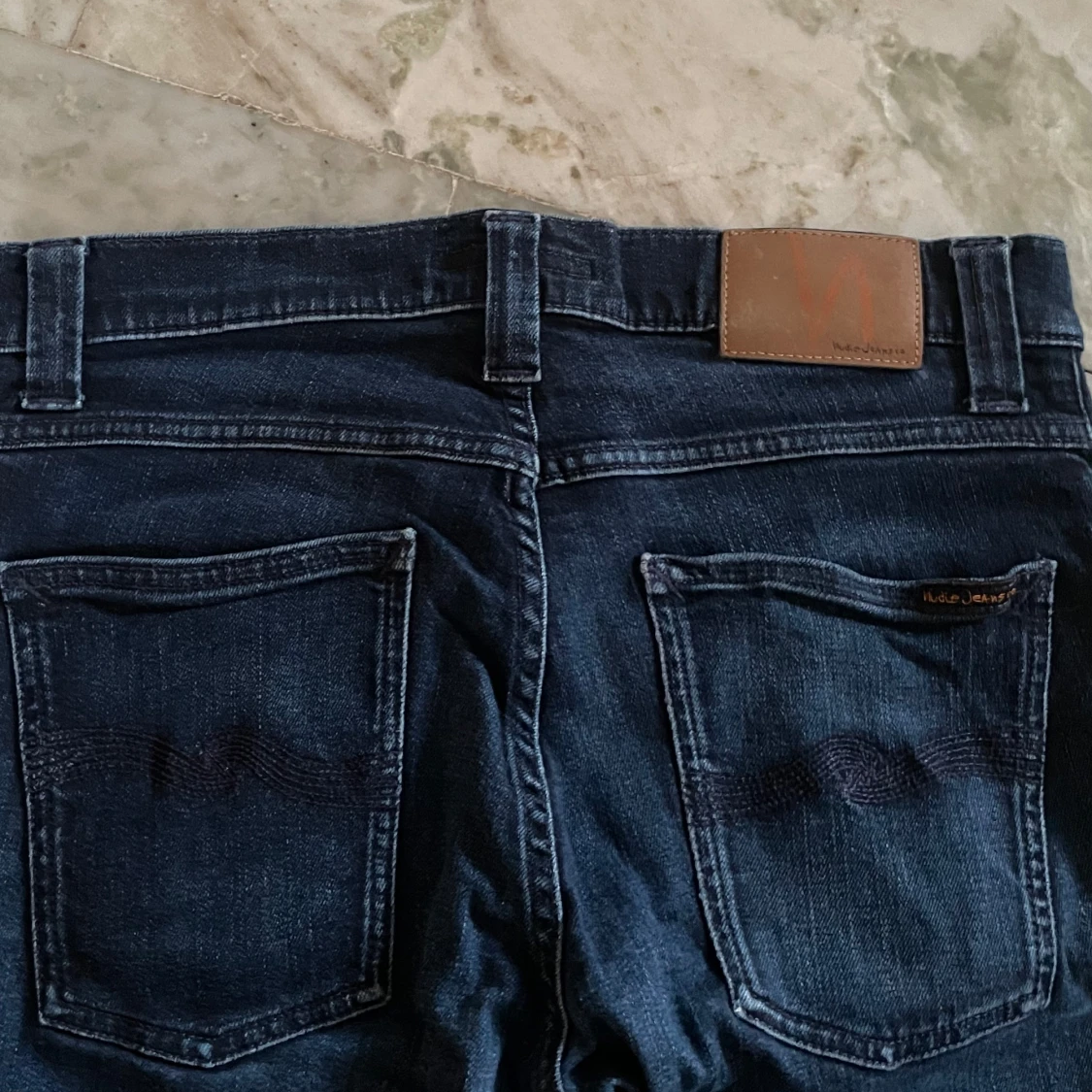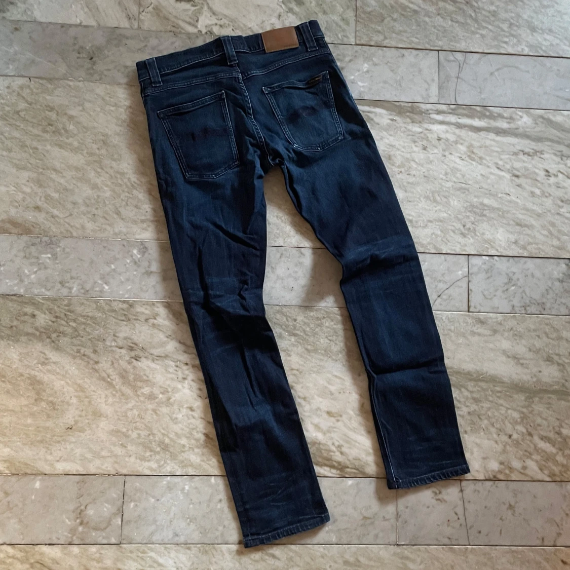 Mörkblå Nudie jeans i den populära modellen Anbass! St 32/32! Hör av dig vid ytterligare frågor! Mvh Henry
