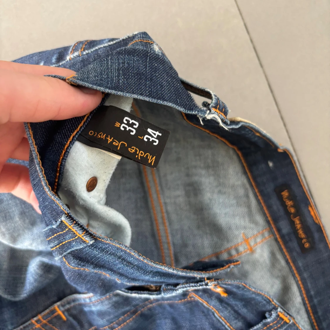 ett par snygga nudie jeans || strlk W33 & L34 || model: Thin Finn || finns slitningar vid låren || skick 7/10 || nypris: 1599kr || hör gärna av er vid intresse!