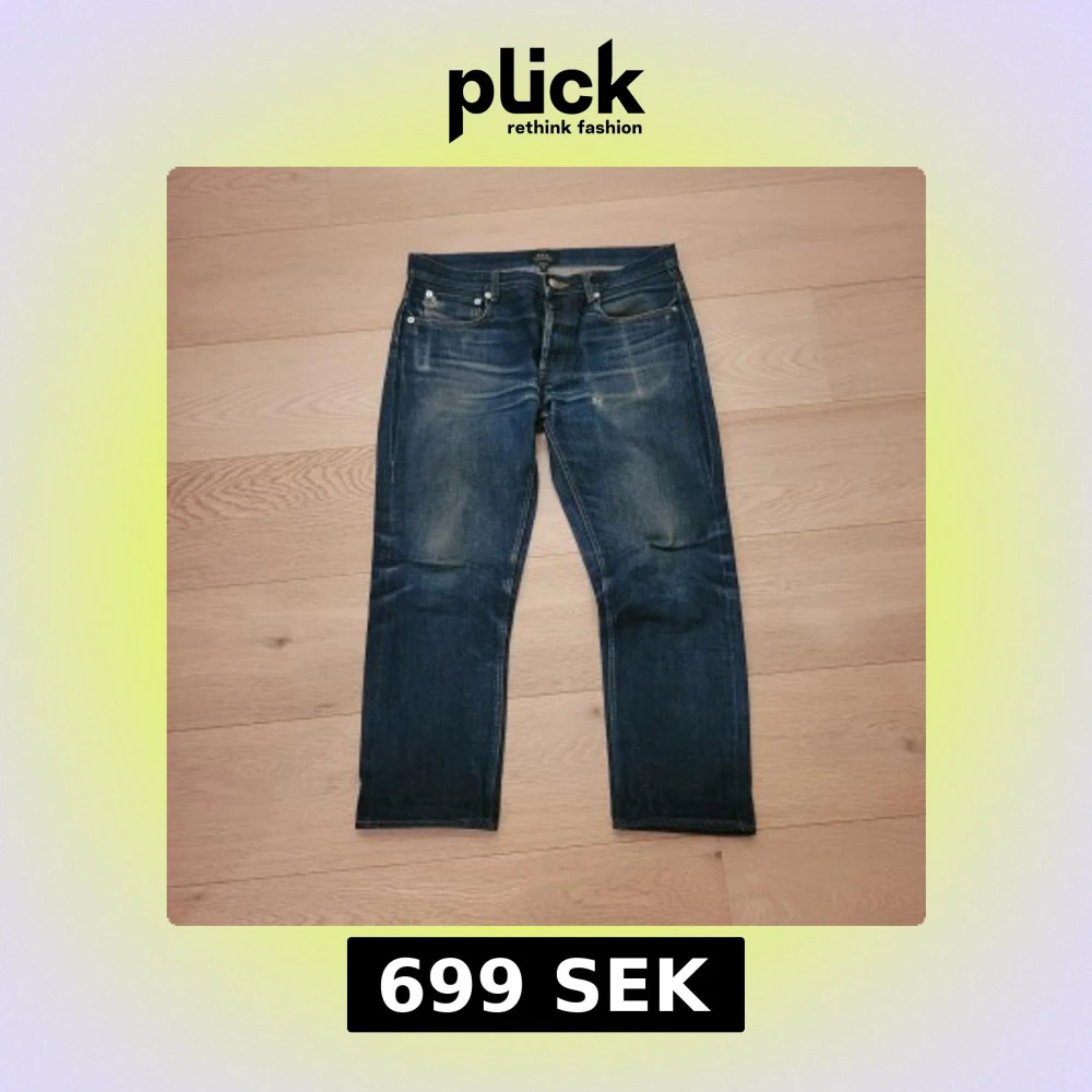 Extremt fina Apc jeans med otroliga slitningar! Modell: Petit standard Mått: Midja 40 Längd 85 Benöppning 17,5