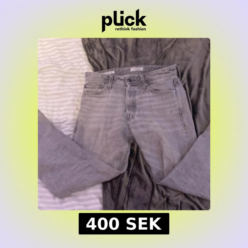 Säljer ett par grå jeans från Jack & Jones, modell Relaxed/Chris. De har en avslappnad passform och är perfekta för en casual look. Den är i skick 7/10 då den används hyfsat mycket förra vintern. Den har inga fläckar eller stora skador men stygnen har gått upp lite längst ner på jeansen.