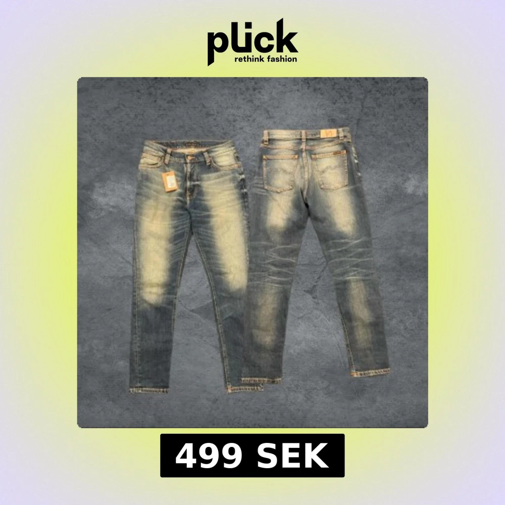 Snygga blå ” nudie jeans ” i en snygg urtvättad nyans, Storlek w26 L28, dock sitter jeansen mycket större än vad storleken säger skulle tippa på ungefär w29 L32