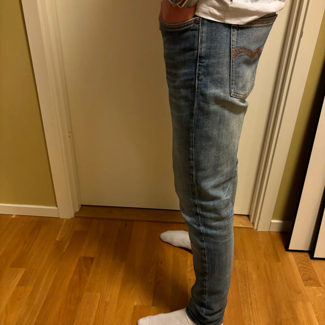 Hej, säljer nu ett par ljusblåa nudiejeans med skön tvätt. De är i nyskick och storlek 30, slimfit. Modellen på bilden är ca 182 cm lång. Hör av dig om du har frågor eller vill ha fler bilder, mvh Jack.