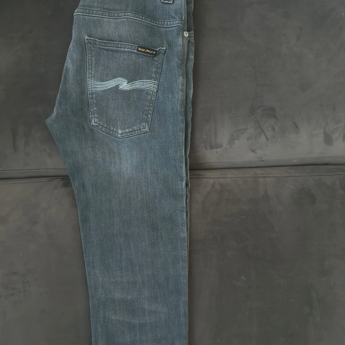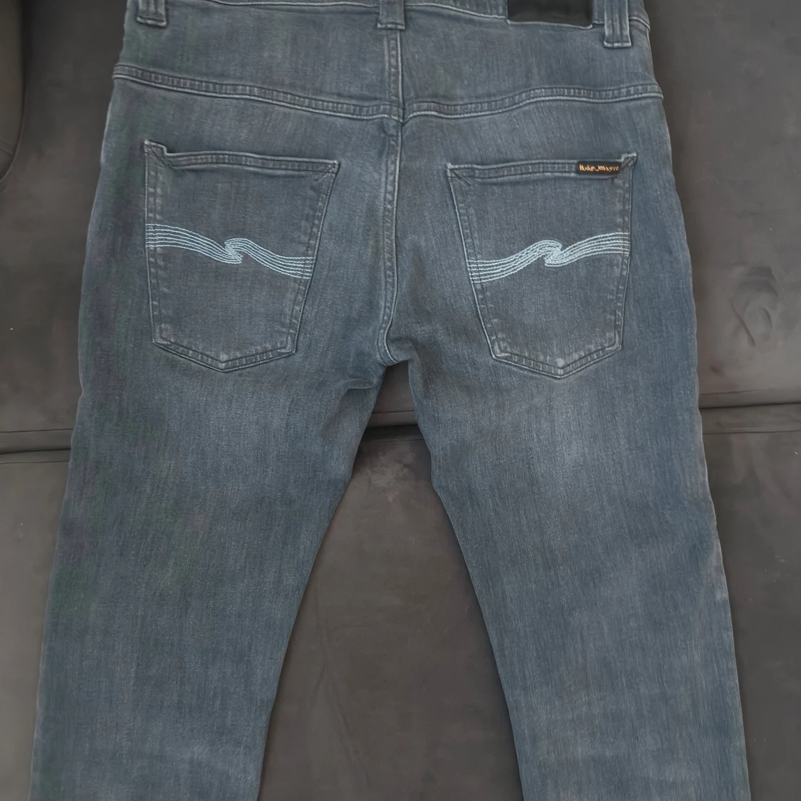 Grå slim fit jeans i storlek 31 i mycket gott skick. Använda endast några få gånger! Väldigt bekväma och funkar perfekt för både avslappnade och uppklädda tillfällen.