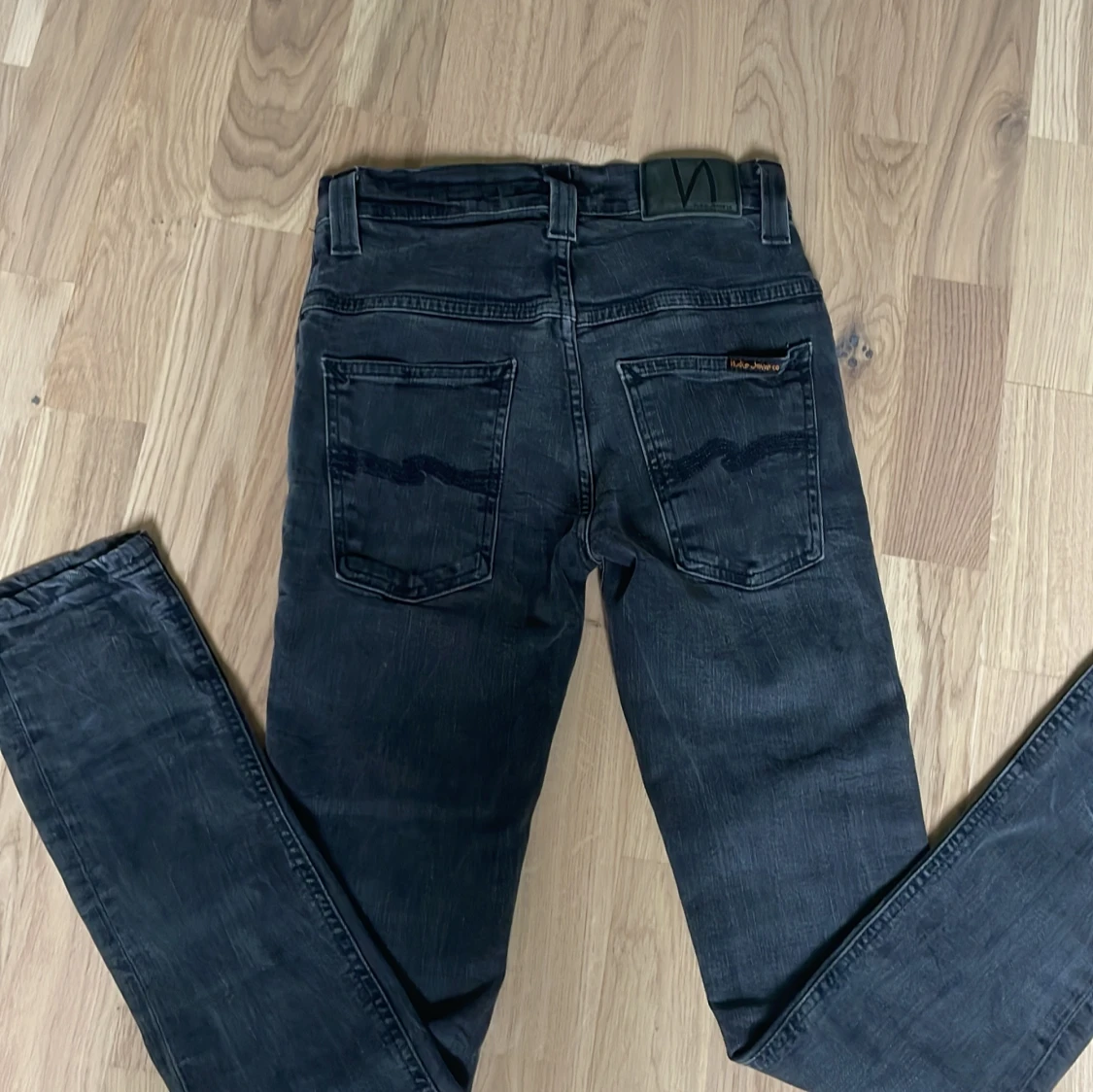 Feta svarta nudie jeans. Modell: Thin Finn (skinny). Skick: 9/10. Storlek: W28/L32. Priset går absolut att diskutera.
