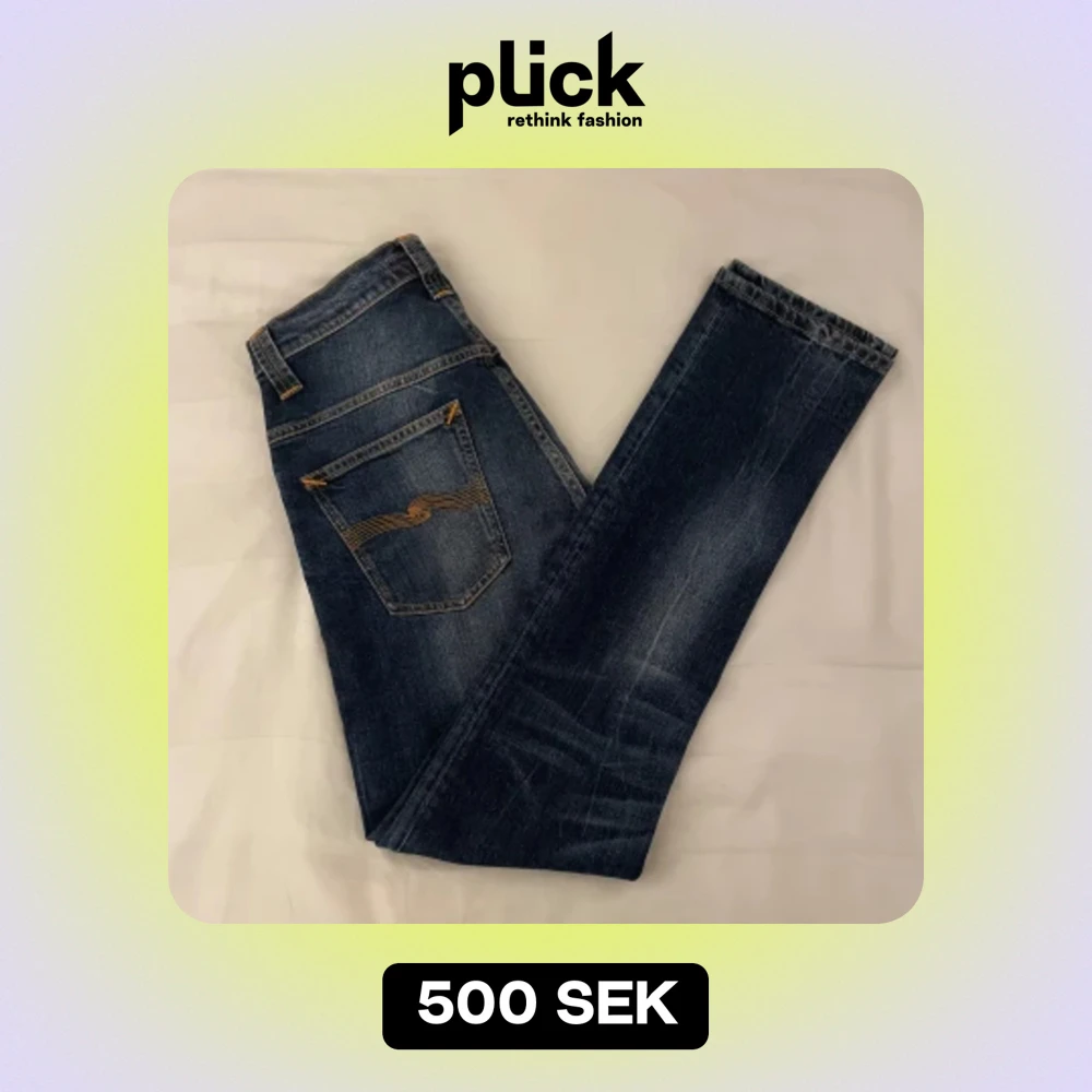Säljer ett par skitsnygga nudie jeans i strl 31/34 då de tyvärr inte passade mig. Köpta på Vestiaire Collective men skicket är väldigt bra förutom slitningen (bild 3) som man ändå inte tänker på när man har på sig byxorna