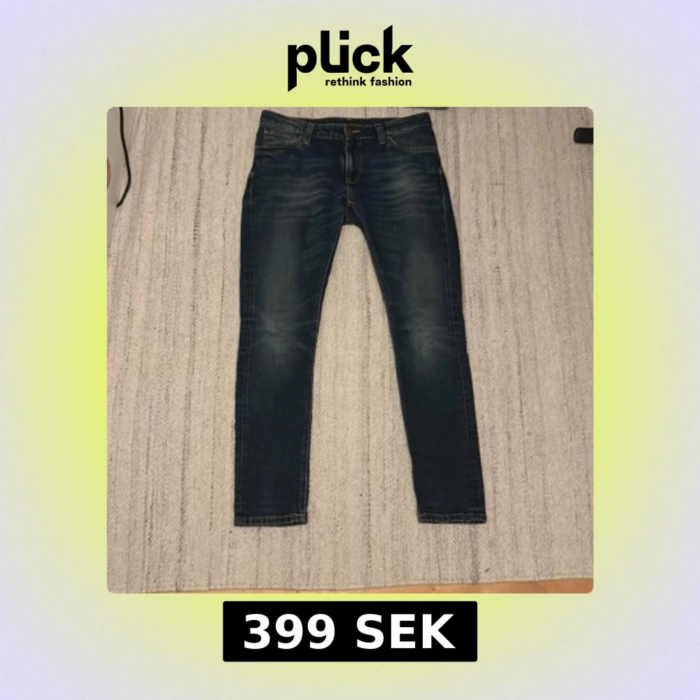 Säljer ett par blå nudie jeans i storlek 31/30. De är i fint skick utan defekter. Har du några frågor eller funderingar hör gärna av dig🤝🙌