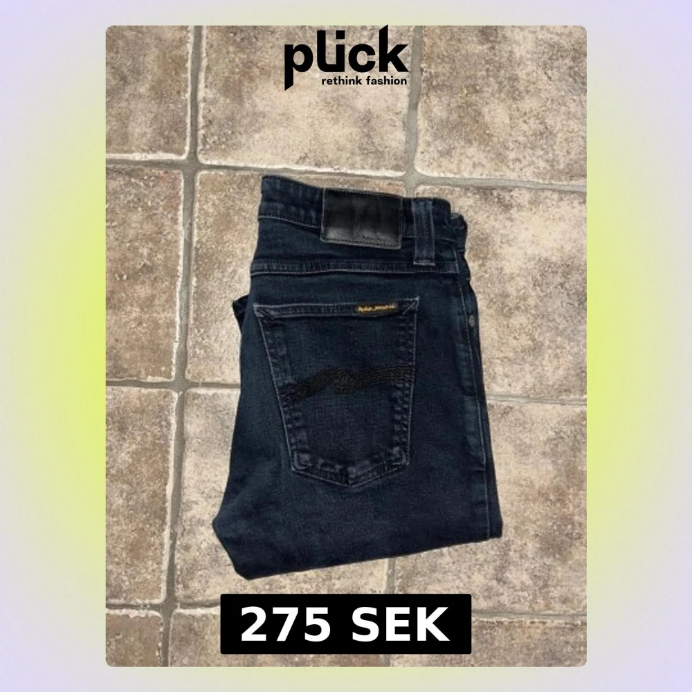 Svarta jeans från Nudie Jeans i modellen Skinny Lin. De har en smal passform. Materialet är stretchigt med ekologisk bomull och elastan för extra komfort. Midja 37cm, längd 101cm. JAG SKICKAR EJ FLER BILDER NÄR JAG BÄR JEANSEN! för storleksguide hänvisar jag till måtten och för bättre inblick i passformen rekommenderar jag att googla på modellnamnet. kolla måtten noggrant :) 44