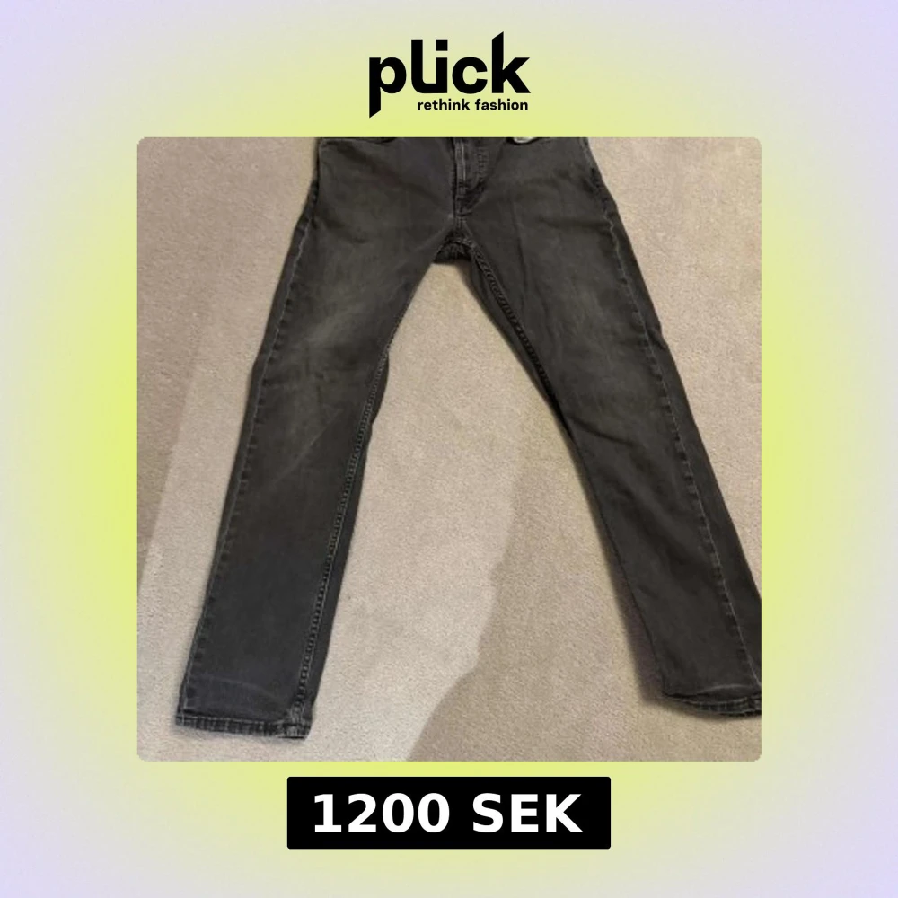 Säljer ett par svarta jeans från Nudie Jeans med klassisk femficksdesign och broderade bakfickor. Jeansen har rak passform och normal midja. Perfekta för en stilren vardagslook.