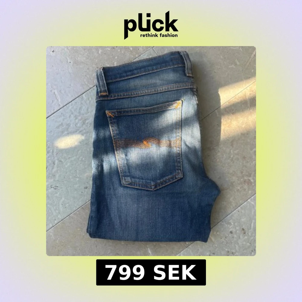 Säljer ett par klassiska blå jeans från Nudie Jeans med snyggt slitna detaljer och kontrastsömmar. Skick:9/10 w30 L29