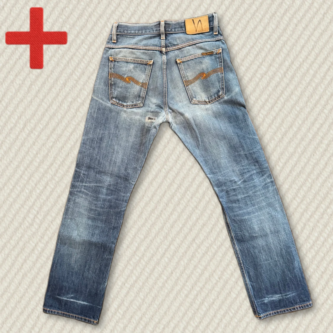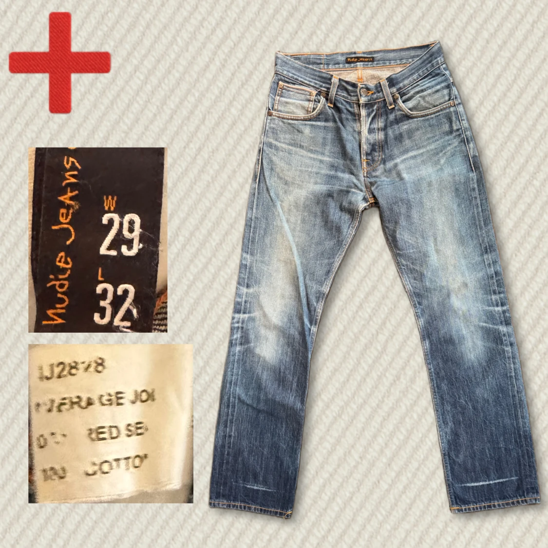 Riktigt snygga Nudie Average Joe Dry Red Selvedge med grym fade och whiskers. Storlek 29/32. Lagade efter en blowout men i övrigt i mycket bra skick. Mått: Midja – 38,5 cm, Innersöm – 76,5 cm, Yttersöm – 101 cm, Lår – 27 cm, Benöppning – 20 cm. Skriv gärna vid frågor!