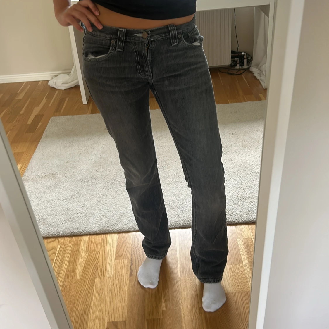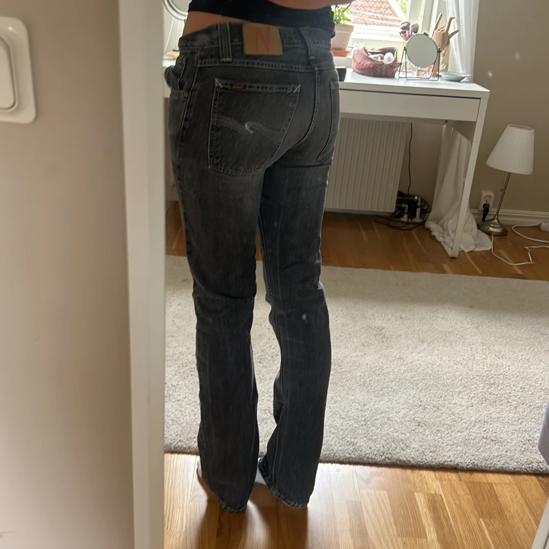 Säljer dessa gråa nudie jeans passar på xs-s. Säljer dem då de inte kommer till andvändning.