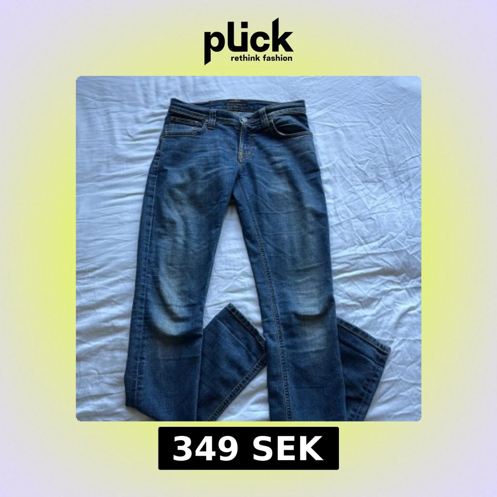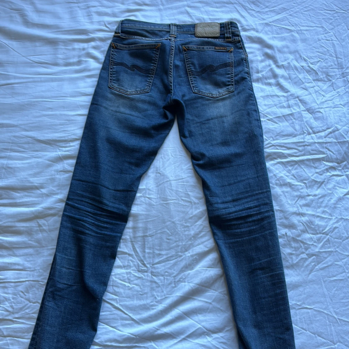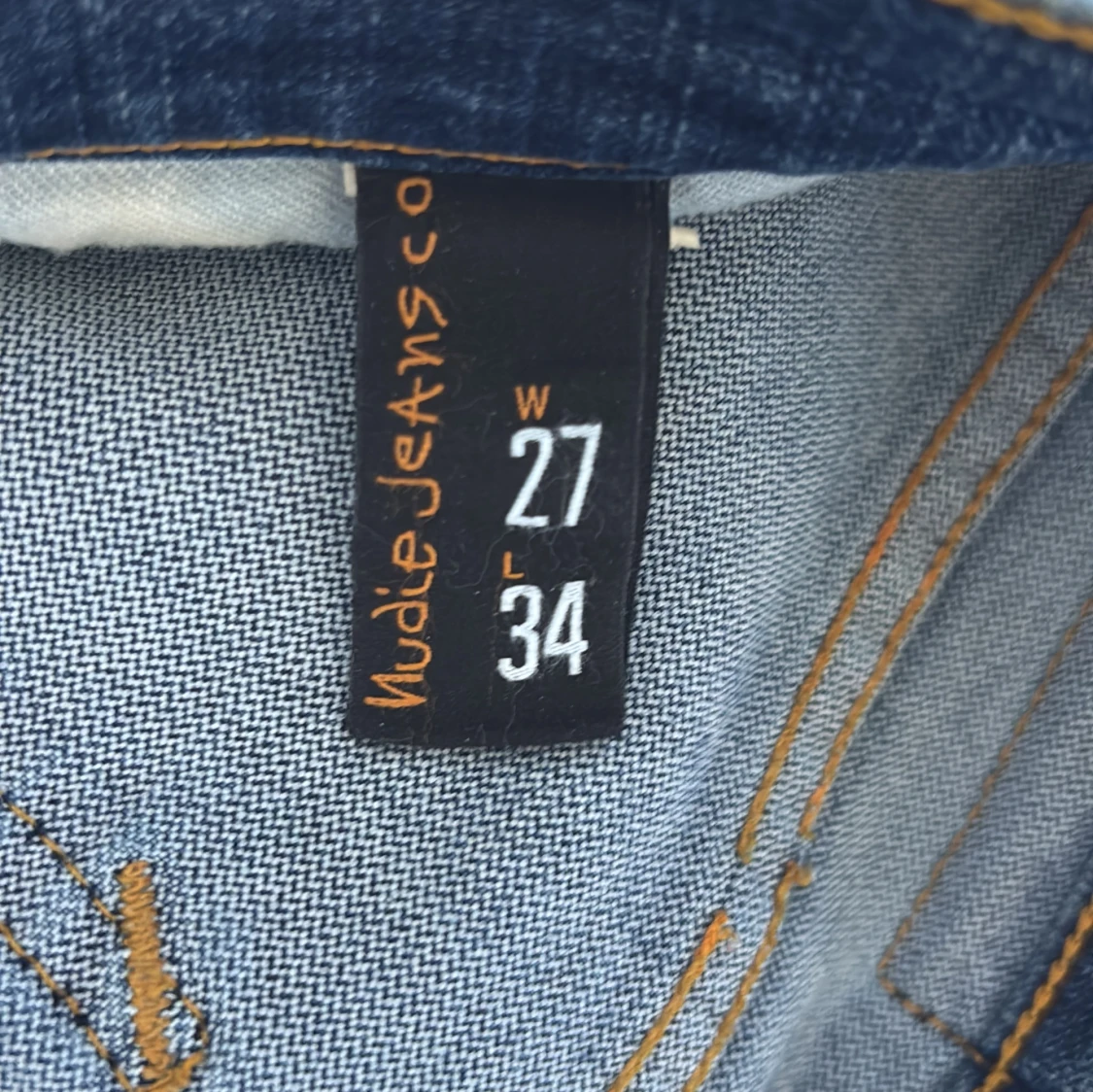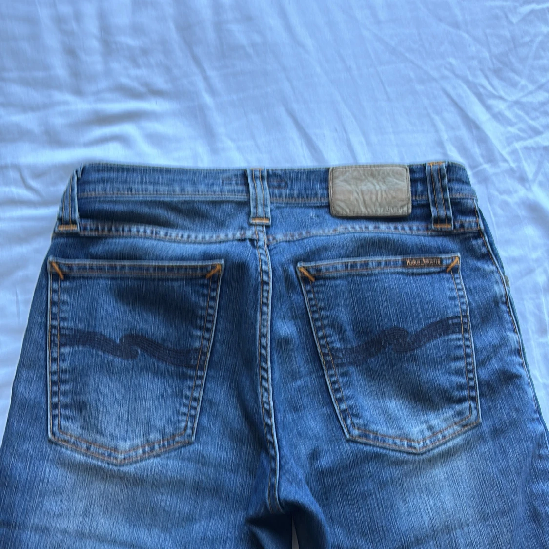 Snygga blå jeans från Nudie Jeans med klassisk femficksdesign och kontrastsömmar. Jeansen har raka ben och subtila slitningar framtill. Bakfickorna har Nudie Jeans karaktäristiska broderi. Tillverkade i bomull för en skön känsla.