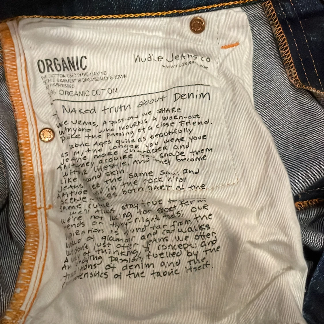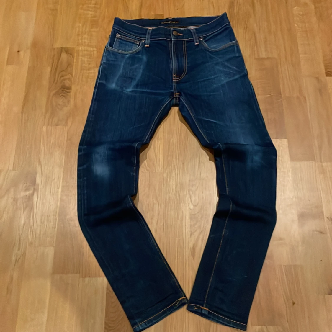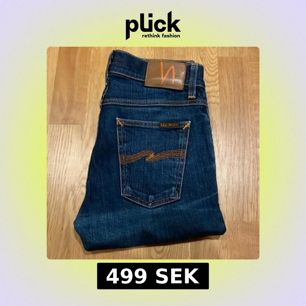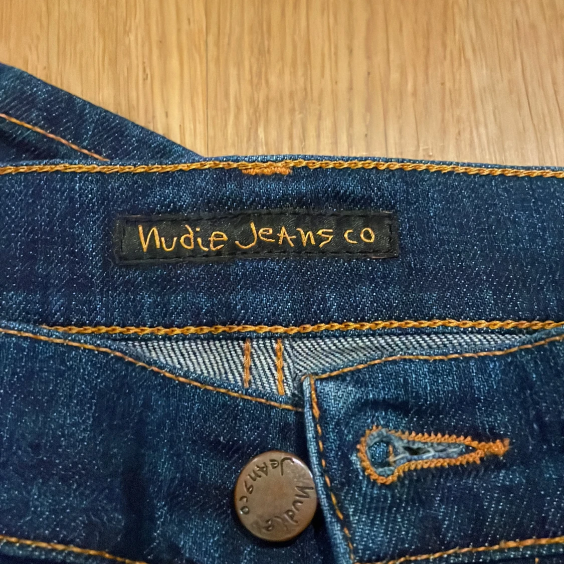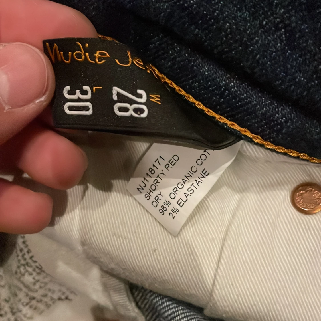 Snygga blå jeans från Nudie Jeans i modellen Shorty Red. Jeansen har klassiska orange sömmar, fem fickor och är tillverkade av 98% ekologisk bomull och 2% elastan för extra stretch. Perfekt passform och coola slitningar på benen. Pris kan diskuteras vid snabb affär!