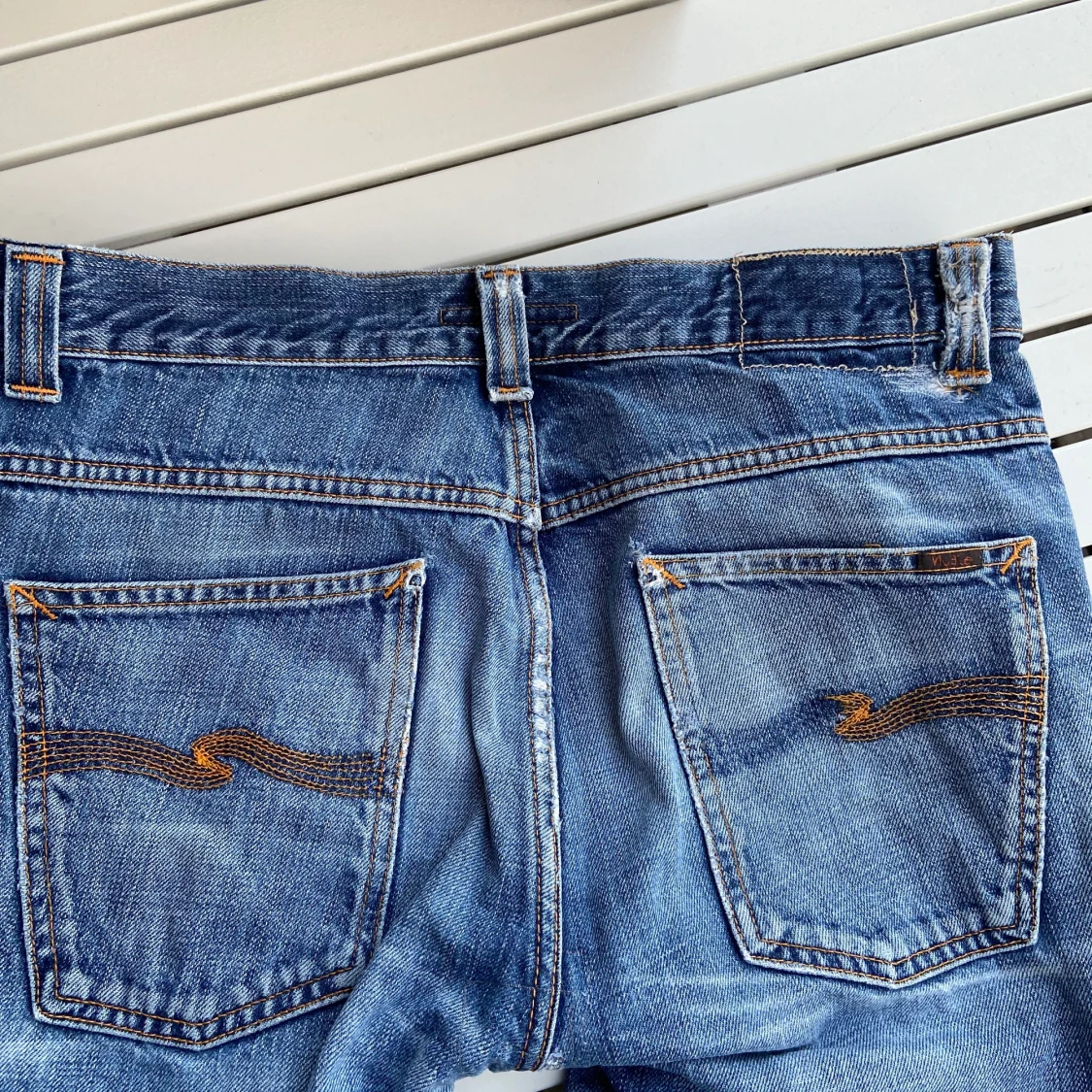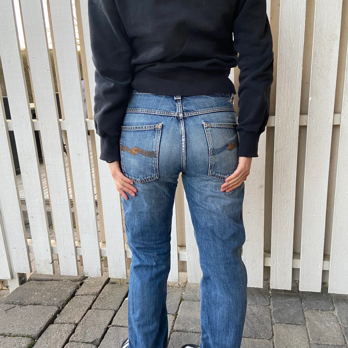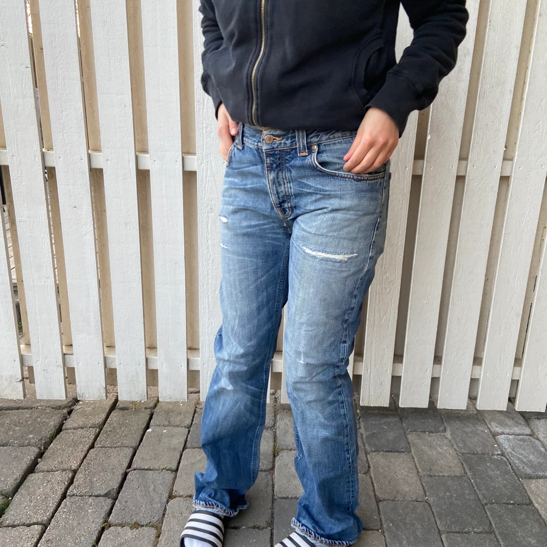 Snygga slitna secondhand jeans som inte kommer till användning längre. Saknar storlek men sitter bra på mig som har W27 och L32(dessa är dock snarare L33)😍😍🤞 Observera bild 3, på höger bakficka saknas det lite tråd... Du står för den spårbara frakten på 66kr